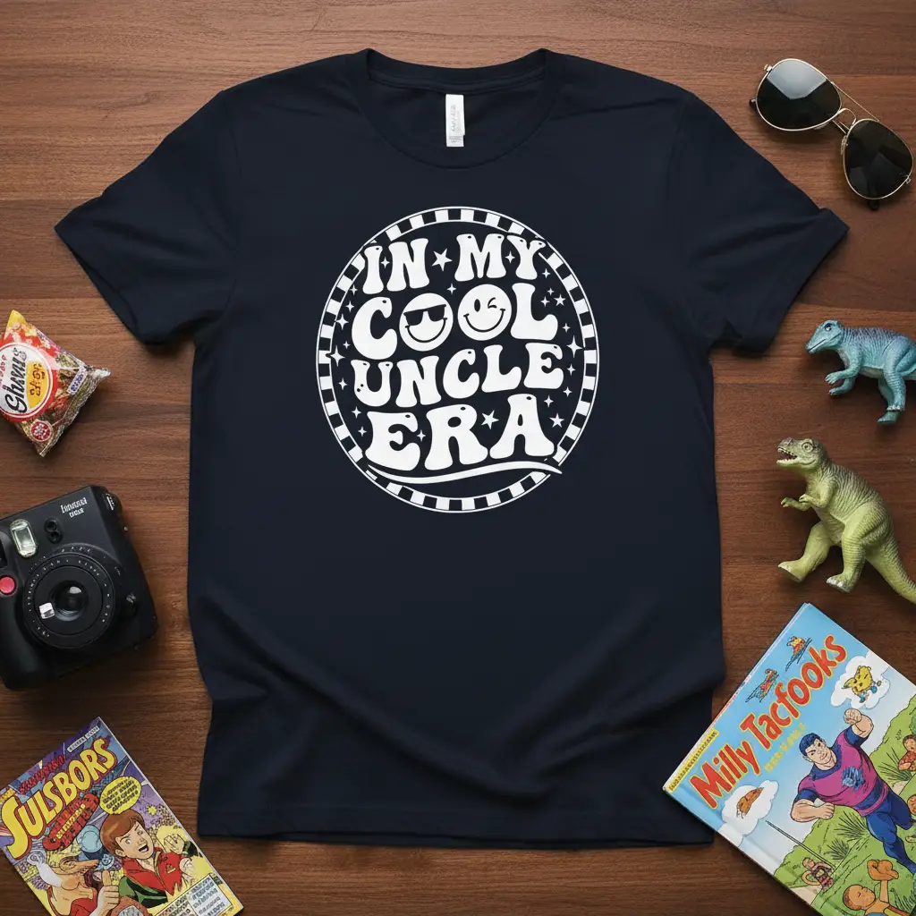 Embrace your “In My Cool Uncle Era” with this fun, retro-inspired t-shirt. Featuring a classic smiley face and groovy typography, it’s the perfect way to showcase your cool uncle status. This comfortable tee makes an excellent gift for birthdays or just because.
