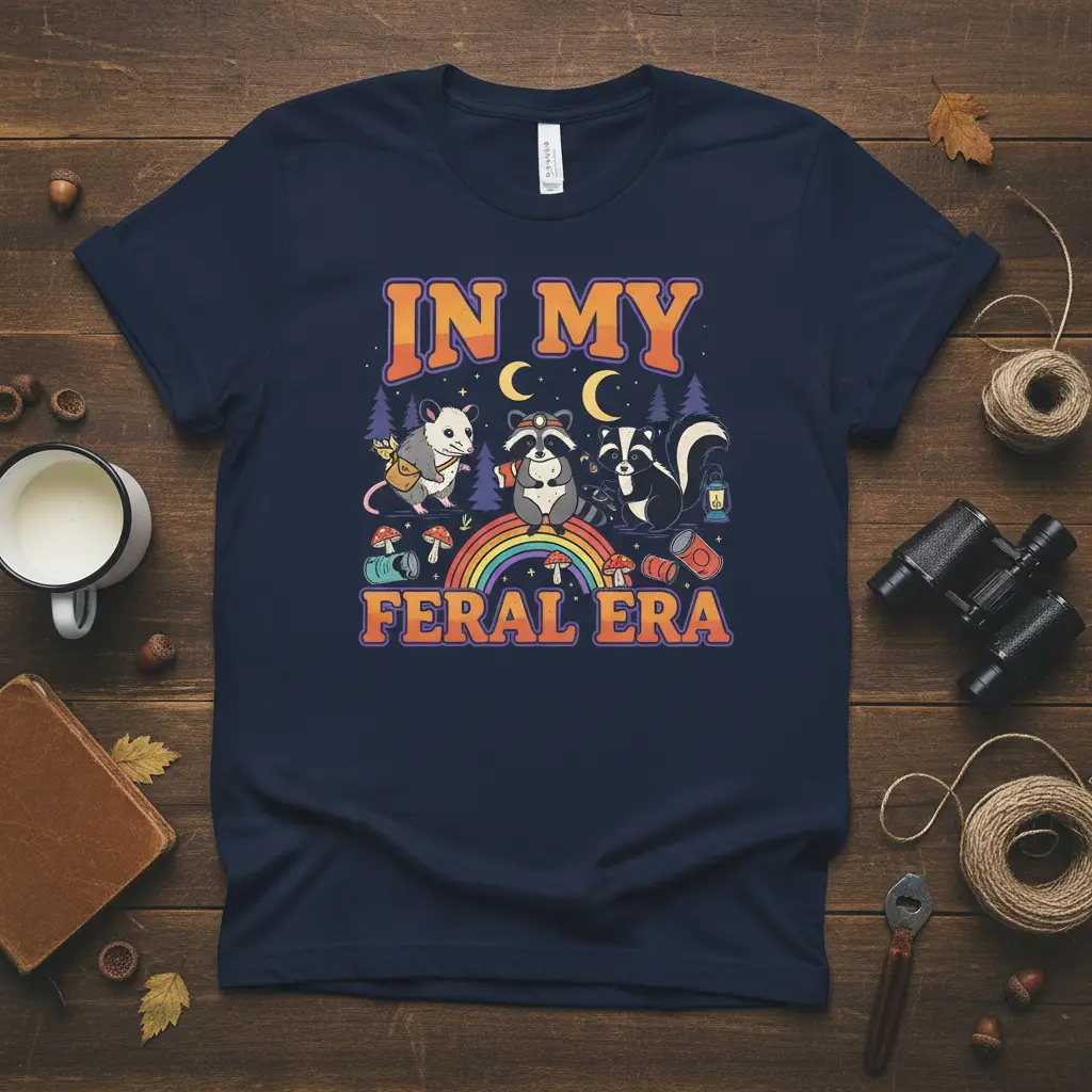 Pick from Black, Navy, Royal, Dark Heather, Red, and White to match your mood and wardrobe staples. Each colorway keeps the IN MY FERAL ERA design clear and photo-ready for everyday wear.