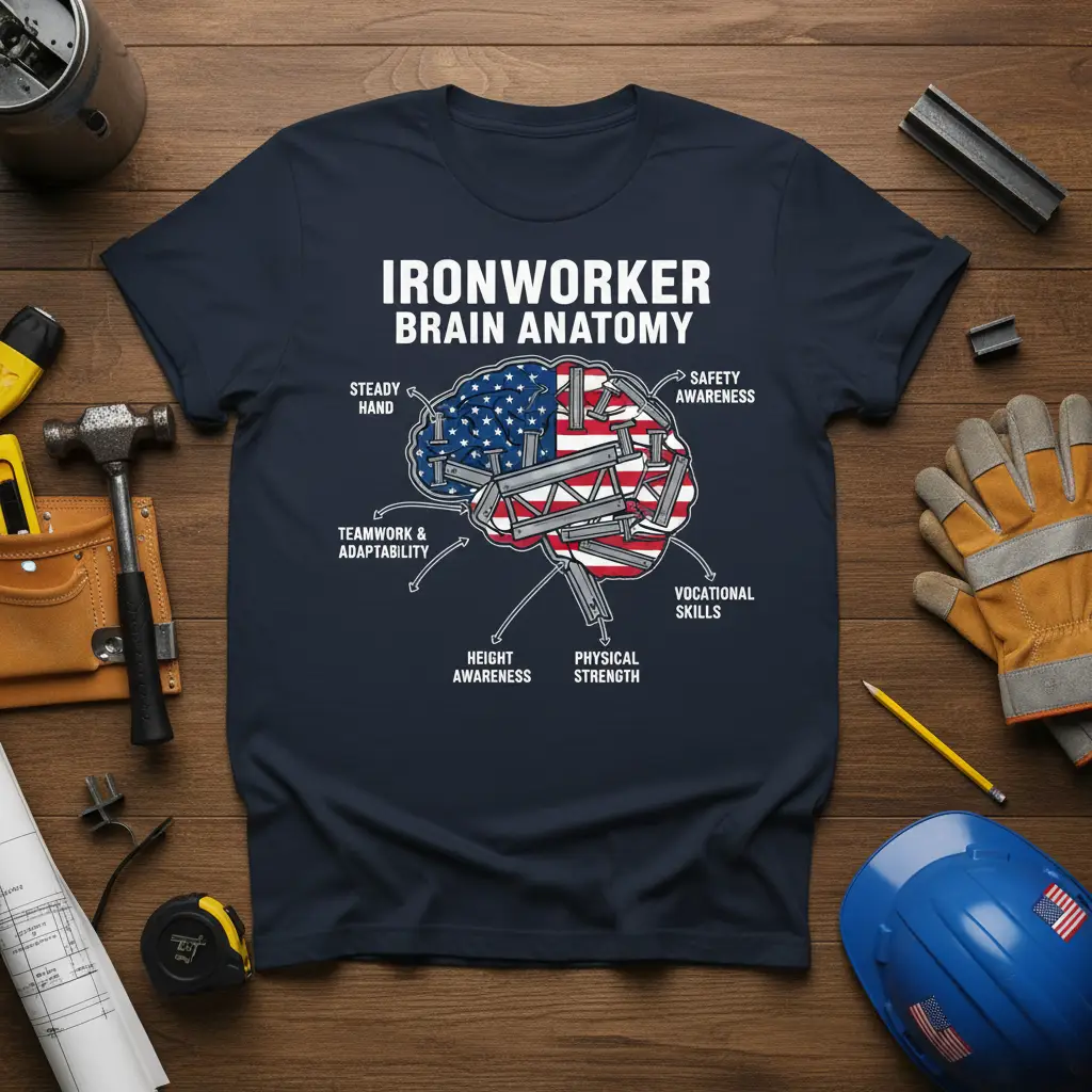 This shirt is a fantastic way for ironworkers to express their identity and professional pride. It’s a conversation starter that acknowledges the respect and admiration these skilled tradespeople deserve. The patriotic undertones, with the American flag integrated into the brain design, add an extra layer of national pride. It’s a symbol of the dedication and hard work that contribute to building the nation.