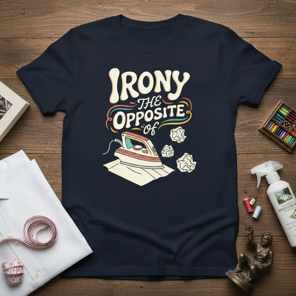 Showcase your sharp wit with the “Irony The Opposite of” T-Shirt, a perfect piece for those who love a good laugh and clever wordplay. This comfortable and stylish tee is made from quality material, making it an ideal gift for friends or a fun addition to your own collection. Express your humorous side with this unique design.