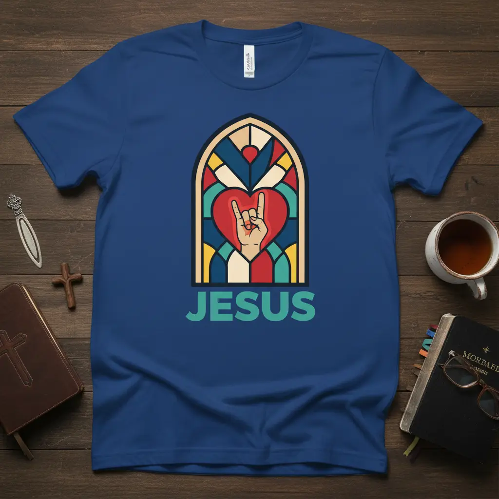 Jesus Rock Hand Heart Stained Glass T-Shirt: Wear Your Faith Boldly