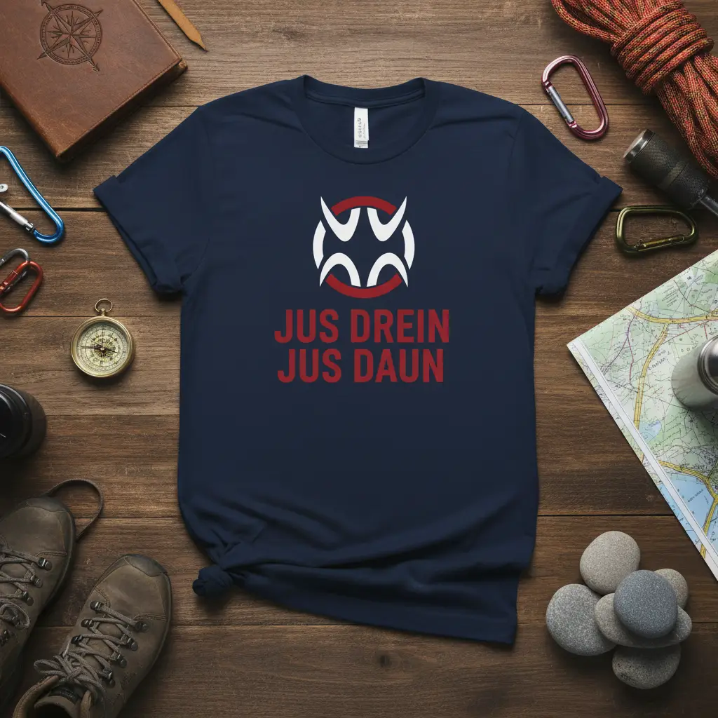 This exclusive t-shirt features the iconic “Jus Drein Jus Daun” text, a recognizable motto within gaming communities. It’s crafted from soft, breathable fabric to ensure maximum comfort during extended gaming sessions or everyday wear. The bold design stands out, making it an ideal choice for gaming conventions, casual meetups, or simply relaxing at home.