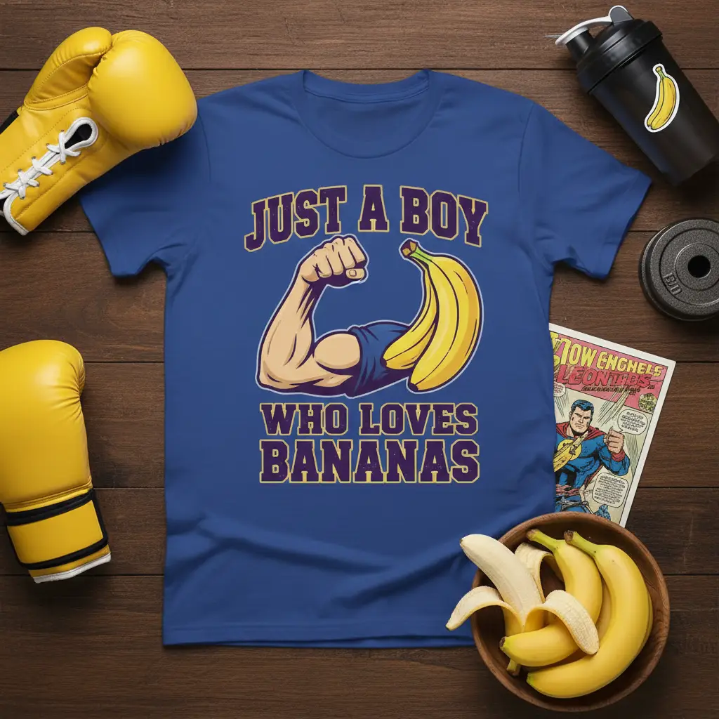 The combination of the witty slogan and the clever illustration creates a memorable design that’s sure to turn heads. It’s perfect for gym-goers, fitness enthusiasts, or anyone who simply has a soft spot for bananas. This JUST A BOY WHO LOVES BANANAS design is a conversation starter, allowing you to express your personality and passion in a fun, lighthearted way. Wear it proudly and let the world know about your love for this potassium-rich treat.