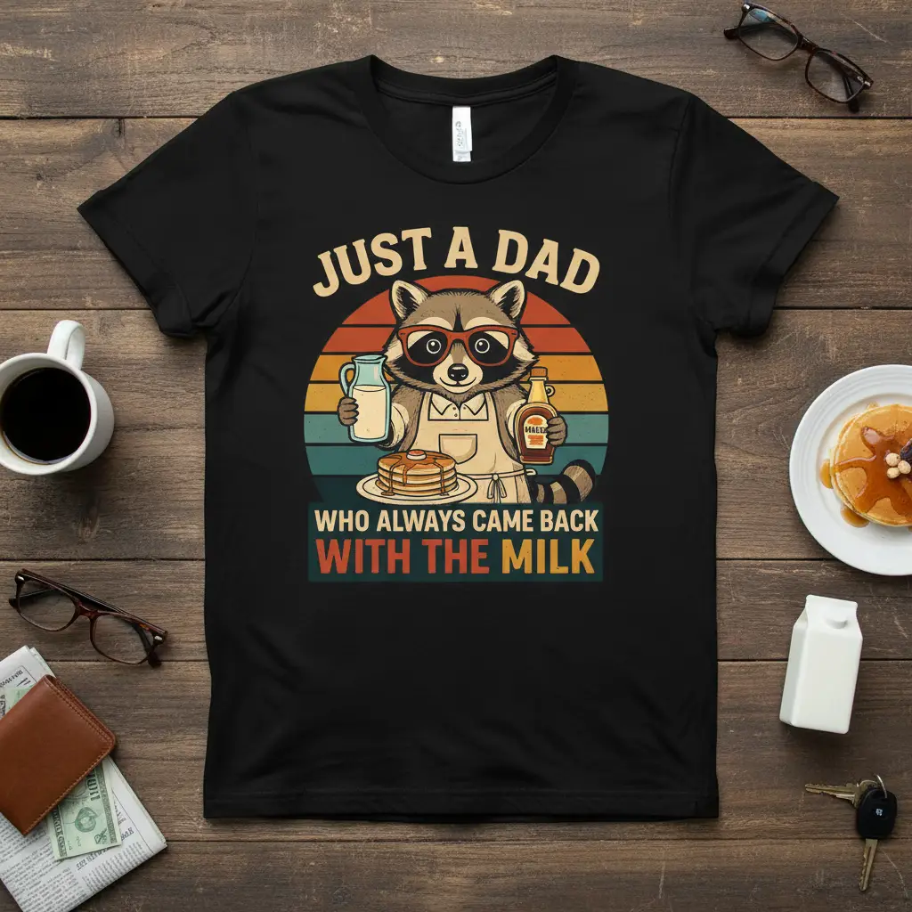 Just A Dad Who Always Came Back With The Milk is more than just a t-shirt; it’s a declaration of fatherhood’s enduring spirit and quirky charms. This unique design celebrates the dads who, no matter what, always ensure the essentials are covered, often with a touch of humor. The graphic features a cool, sunglasses-wearing raccoon, embodying the resourceful and ever-present dad figure. It’s a perfect blend of nostalgia and modern dad humor, making it an ideal gift for any occasion. Show appreciation for the dad who always knows what to do and where to find it.