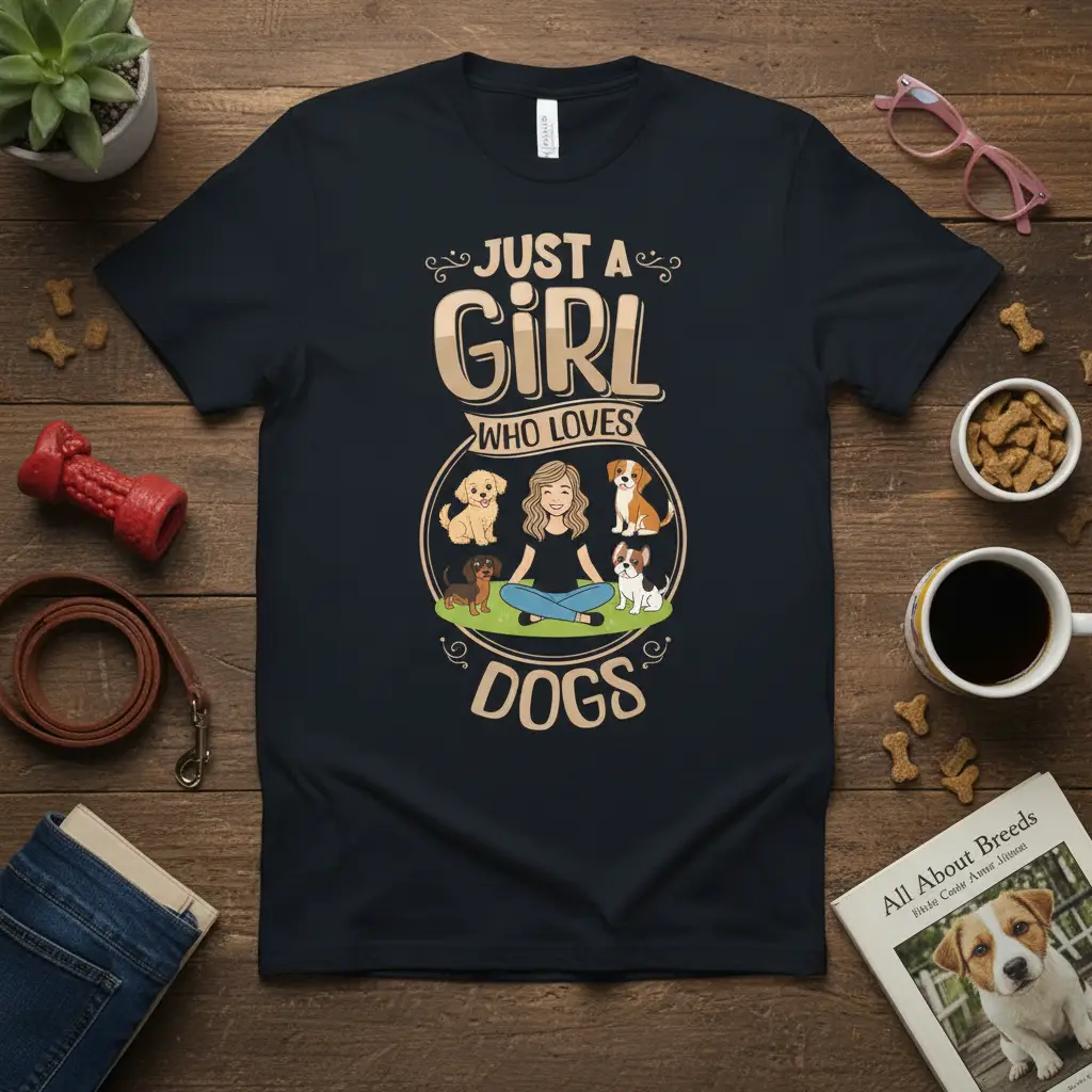 Just a Girl Who Loves Dogs—this phrase perfectly encapsulates the heart of a true canine enthusiast. If your life revolves around wagging tails, wet nose boops, and the unconditional love only a dog can provide, then this t-shirt is designed just for you. It’s more than just apparel; it’s a statement of your passion and a badge of honor for every dog mom, dog dad, or dedicated pet parent out there. Imagine the smiles and nods of recognition you’ll get when you wear this adorable tee, a clear declaration of your furry family members’ importance in your life.