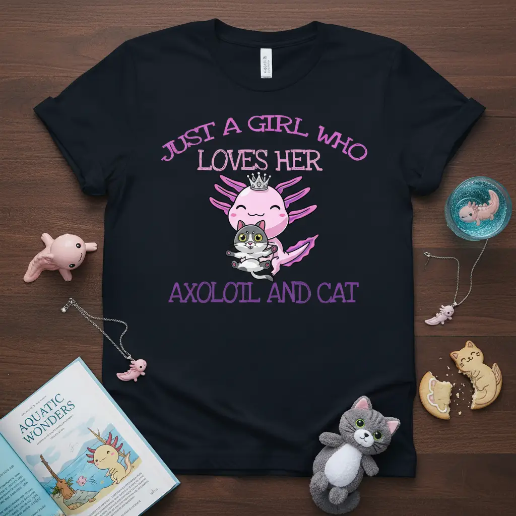 Just A Girl Who Loves Her Axolotl And Cat T-Shirt