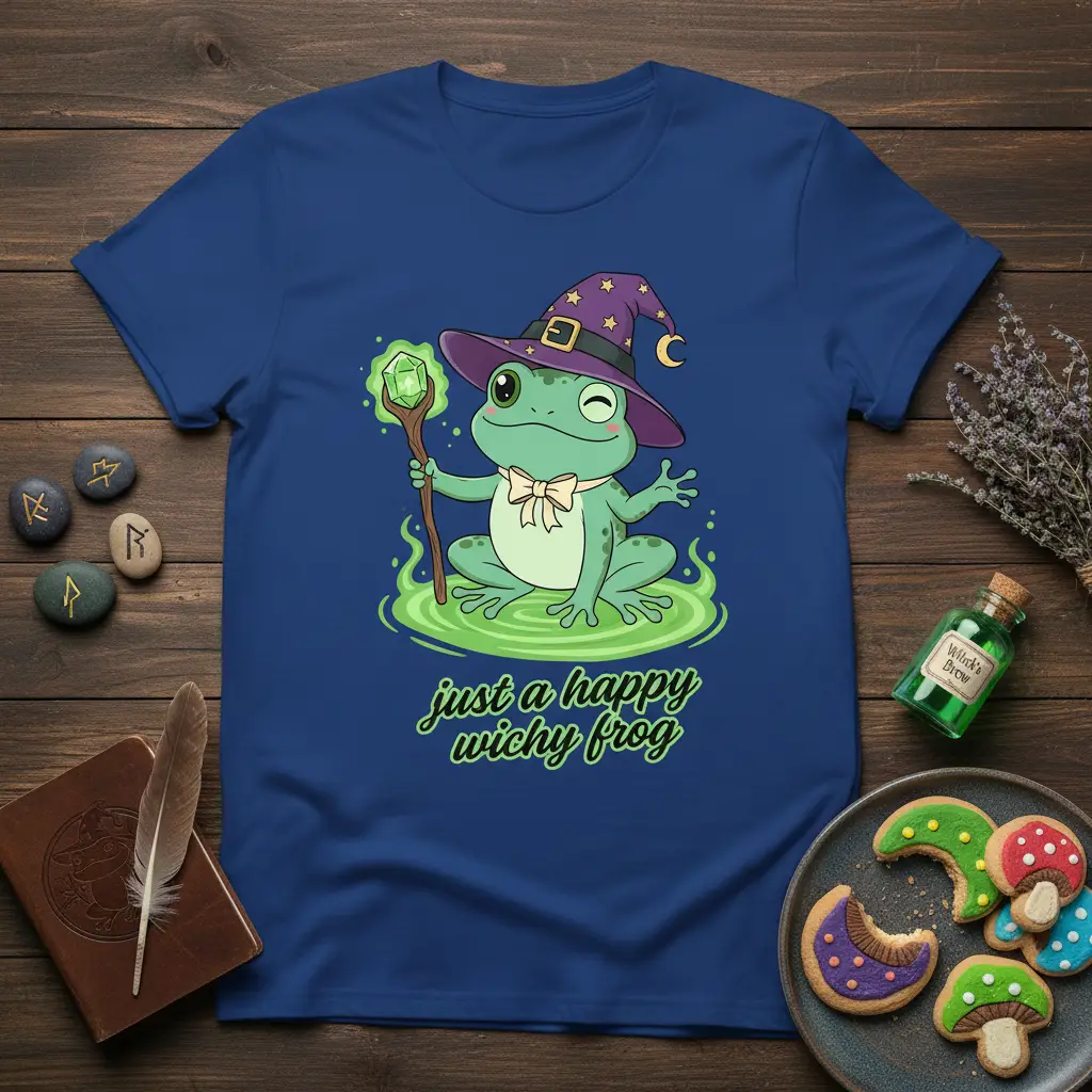 Searching for a unique gift? The ‘just a happy wichy frog’ t-shirt is an excellent choice for anyone who loves magic, frogs, or simply appreciates a well-designed, humorous graphic tee. It’s a thoughtful present that brings a smile and a touch of enchantment. Surprise a loved one with this charming piece and let them showcase their magical spirit.