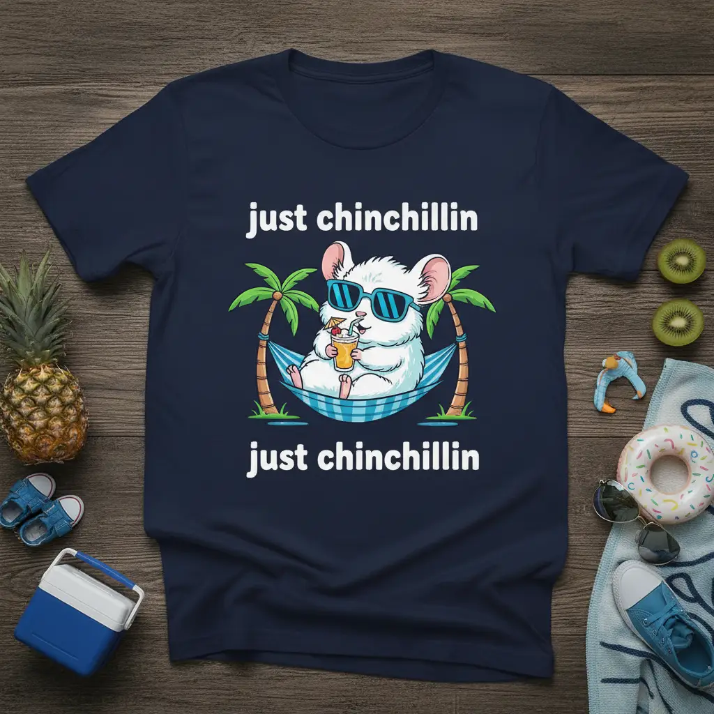 Pick from Black, Navy, Royal, Dark Heather, Red, and White to match your mood and wardrobe staples. Each colorway keeps the just chinchillin just chinchillin design clear and photo-ready for everyday wear.