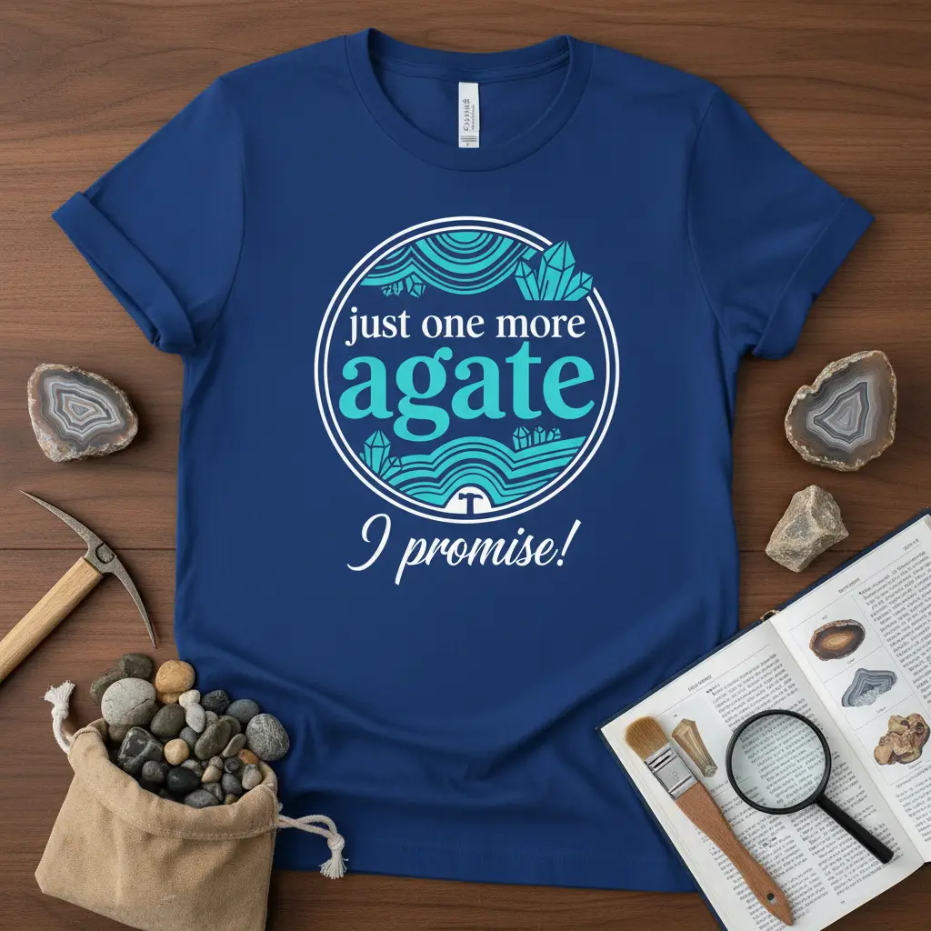 Embrace your inner rock hound with the “just one more agate I promise!” t-shirt. This unique tee is perfect for geology enthusiasts and agate collectors who can’t resist adding to their collection. Made from comfortable, high-quality fabric, it’s the ideal gift for any mineral lover.
