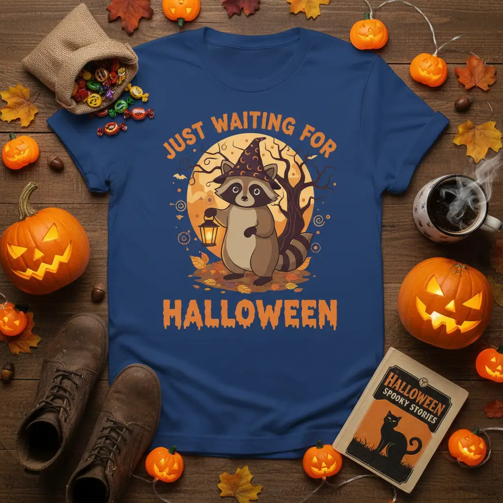 Just Waiting For Halloween is more than just a phrase; it’s a feeling that captures the hearts of many as autumn leaves begin to fall and the air grows crisp. This t-shirt design embodies that delightful anticipation, featuring an utterly charming raccoon ready for the spooky season. It’s perfect for anyone who counts down the days until Halloween, cherishes pumpkin patches, and loves the magic of fall festivities. The playful graphic and festive text make it an ideal addition to any Halloween enthusiast’s wardrobe, sparking joy and conversation. Get ready to showcase your Halloween spirit with this unique and endearing apparel.