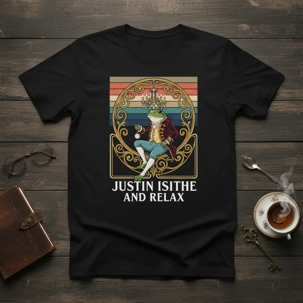 Justin Isithe And Relax, this phrase encapsulates a mood, a lifestyle, and a fantastic design that’s sure to turn heads. This unique t-shirt brings together a charming, dapper frog character with a distinct vintage art deco aesthetic. It’s more than just apparel; it’s a statement piece that speaks to those who appreciate humor, style, and the art of taking it easy.