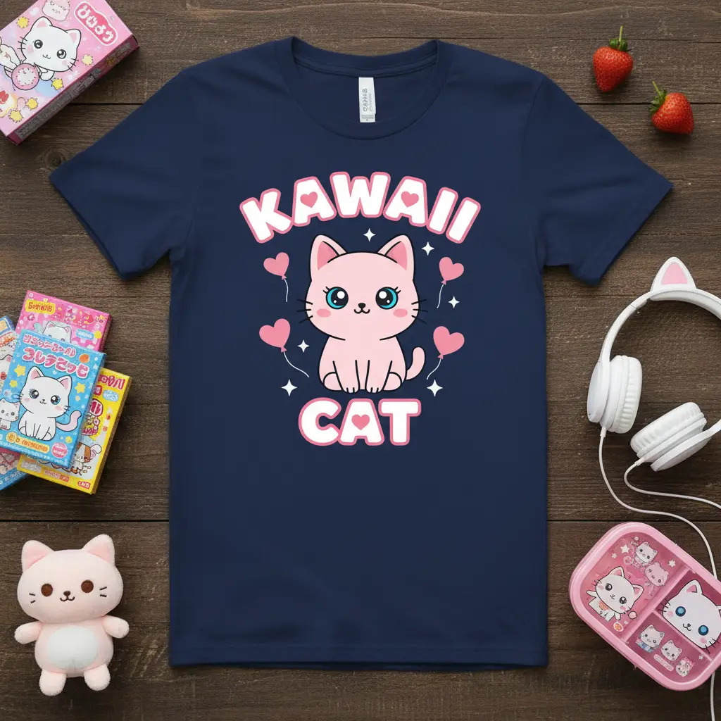 Kawaii Cat T-Shirt Cute Japanese Style Gift for Cat Lovers