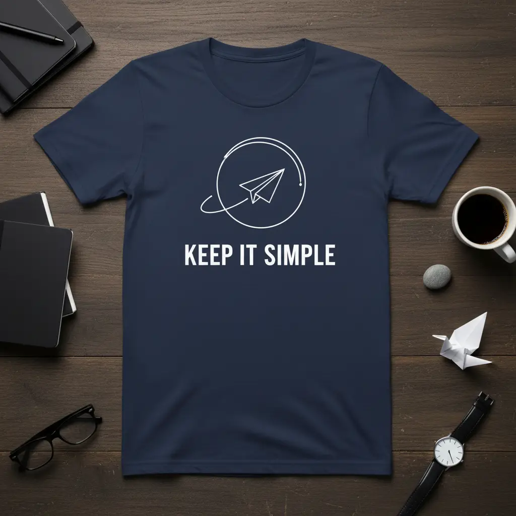 Keep It Simple is more than just a phrase; it’s a philosophy that can transform daily life into a more peaceful and focused experience. This t-shirt beautifully encapsulates that sentiment with its clean, minimalist design. Featuring a delicate paper airplane soaring within a subtle circular motif, it evokes a sense of effortless movement and clarity. The straightforward typography of “KEEP IT SIMPLE” reinforces the message, making it a powerful yet understated statement piece.