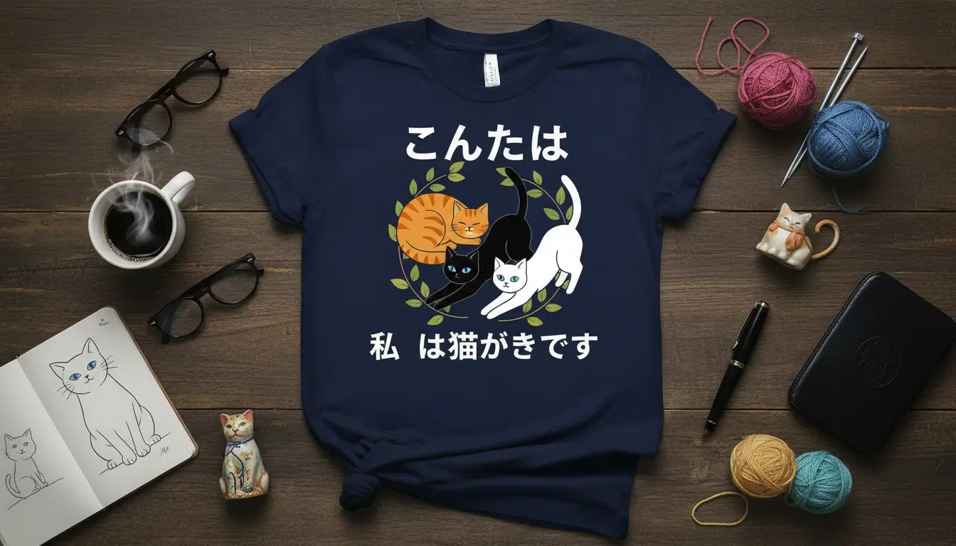 The “こんにちは私は猫がすきです” Japanese Cat Lover T-Shirt