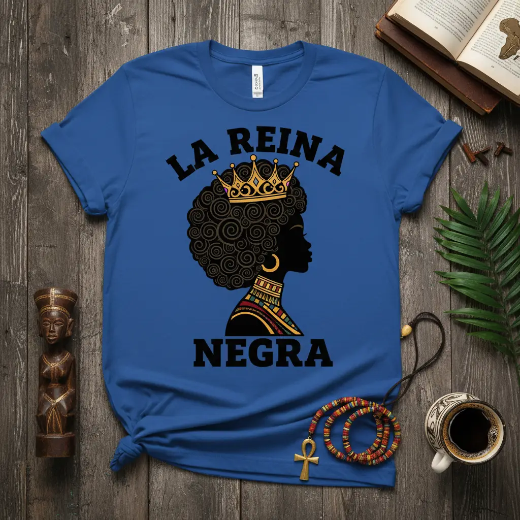 The La Reina Negra Queen Crown T-Shirt is more than just a piece of clothing; it’s a statement of pride, power, and undeniable royalty. This design is crafted to resonate deeply with those who embrace their heritage and celebrate their strength. It serves as a daily reminder of the queen within, encouraging confidence and self-love. Don’t miss out on the chance to own this empowering symbol of identity and grace. Order yours today and let your inner queen shine brightly!