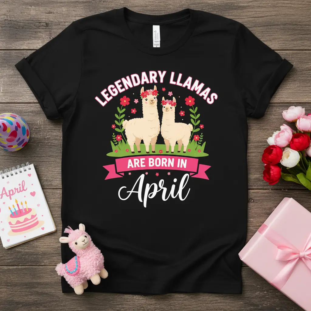 Legendary Llamas Are Born In April Birthday T-Shirt
