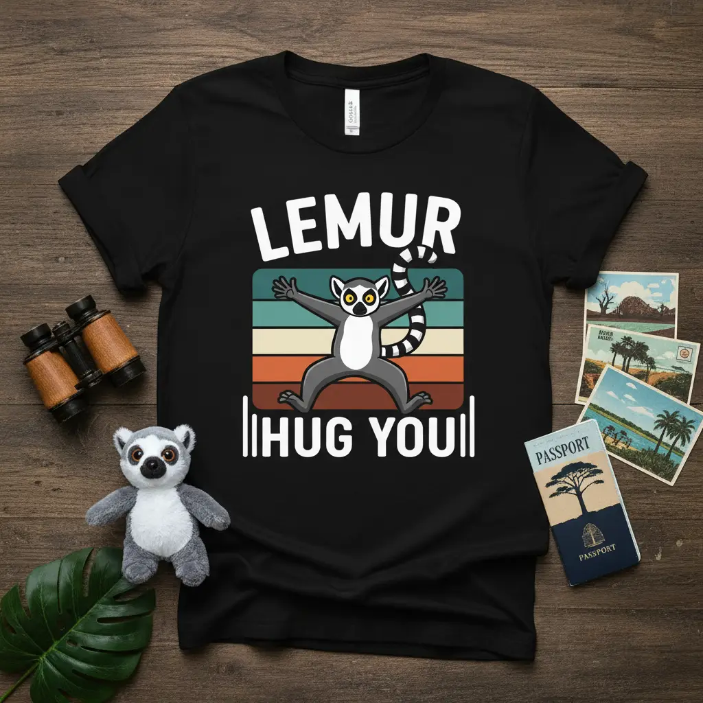 Lemur Hug You! This playful and heartwarming t-shirt design is perfect for anyone who has a soft spot for these unique and charismatic primates. It captures the essence of a friendly embrace, making it an instant favorite for animal lovers and those who appreciate a touch of whimsy. The design combines bold typography with a charming graphic, creating a memorable visual that’s sure to bring smiles. It’s more than just a shirt; it’s a declaration of love for lemurs and all the joy they represent.