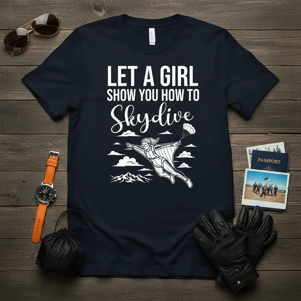 Looking for a unique gift for the skydiver in your life? This “Let a Girl Show You How to Skydive” t-shirt is an ideal choice. It’s perfect for birthdays, holidays, or just as a special surprise for someone who loves adventure. The design is a conversation starter and a clear expression of their passion. It’s a gift that celebrates their daring spirit and love for the skies.