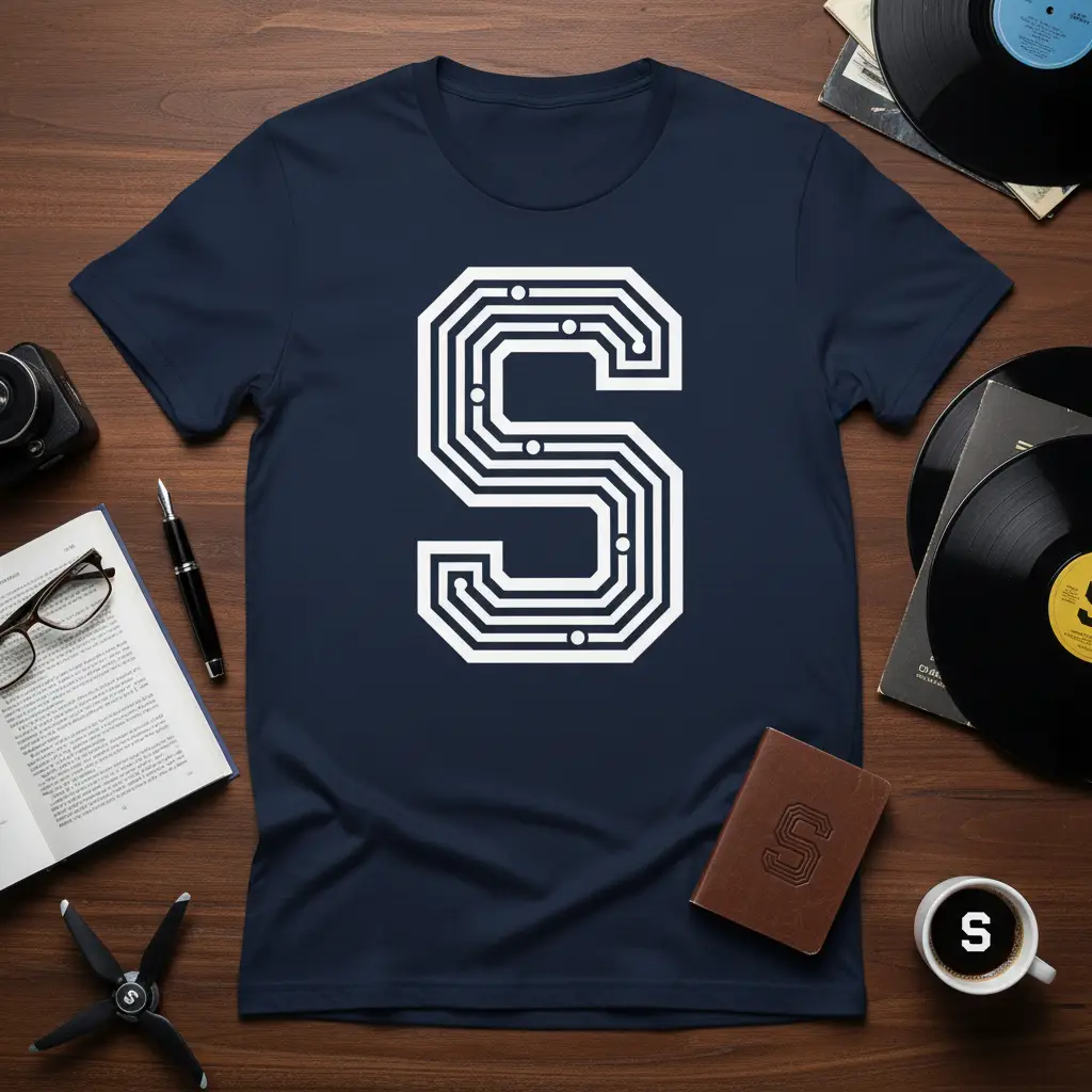 The letter ‘S’ is rendered with precision, using a geometric approach that suggests connectivity and data flow. This Letter S Circuit Design design isn’t just about the letter itself; it’s about the concept of interconnectedness and the intricate beauty found in technological components. It’s a subtle nod to the digital world that surrounds us, presented in a wearable art form that celebrates the elegance of engineering.