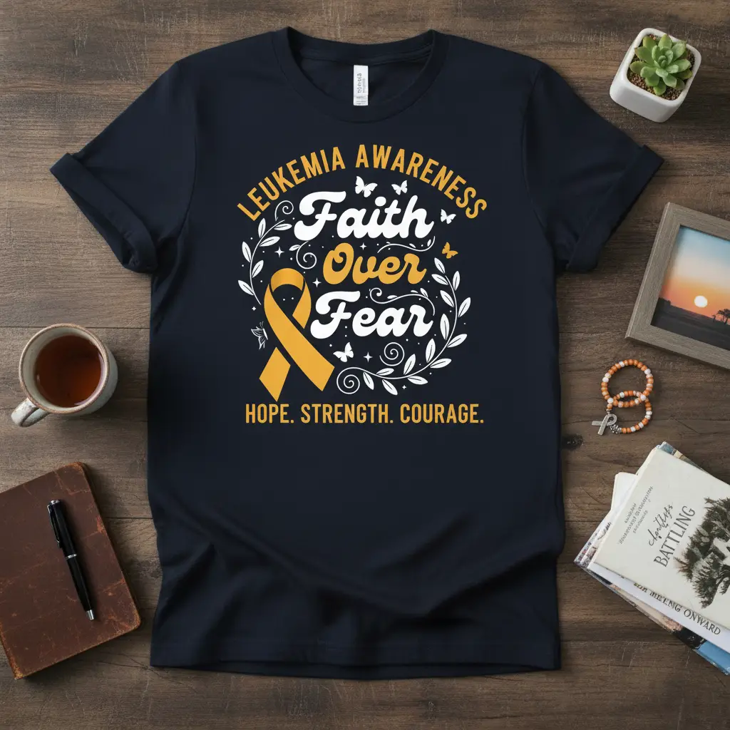 This Leukemia Awareness Faith Over Fear t-shirt is a tangible way to show your solidarity and support for the leukemia community. It’s a powerful statement piece that combines meaningful messaging with comfortable wearability. By choosing this shirt, you’re not just buying apparel; you’re joining a movement of hope and resilience. Let this tee be a reminder that even in the face of fear, faith, strength, and courage can lead the way. Order yours today and wear your support proudly!