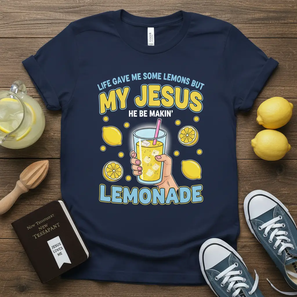 Life Gave Me Some Lemons But My Jesus He Be Makin’ Lemonade T-Shirt is more than just apparel; it’s a statement of faith, a dash of humor, and a celebration of divine positivity. This unique design beautifully captures the essence of turning life’s challenges into something sweet and refreshing, all with a touch of divine intervention. It’s crafted for those who find joy and strength in their beliefs, blending a popular secular phrase with a deeply spiritual message. The vibrant graphics and catchy text make it a conversation starter, perfect for spreading smiles and faith wherever you go. Wear your message proudly and let your light shine with this exceptionally designed tee.