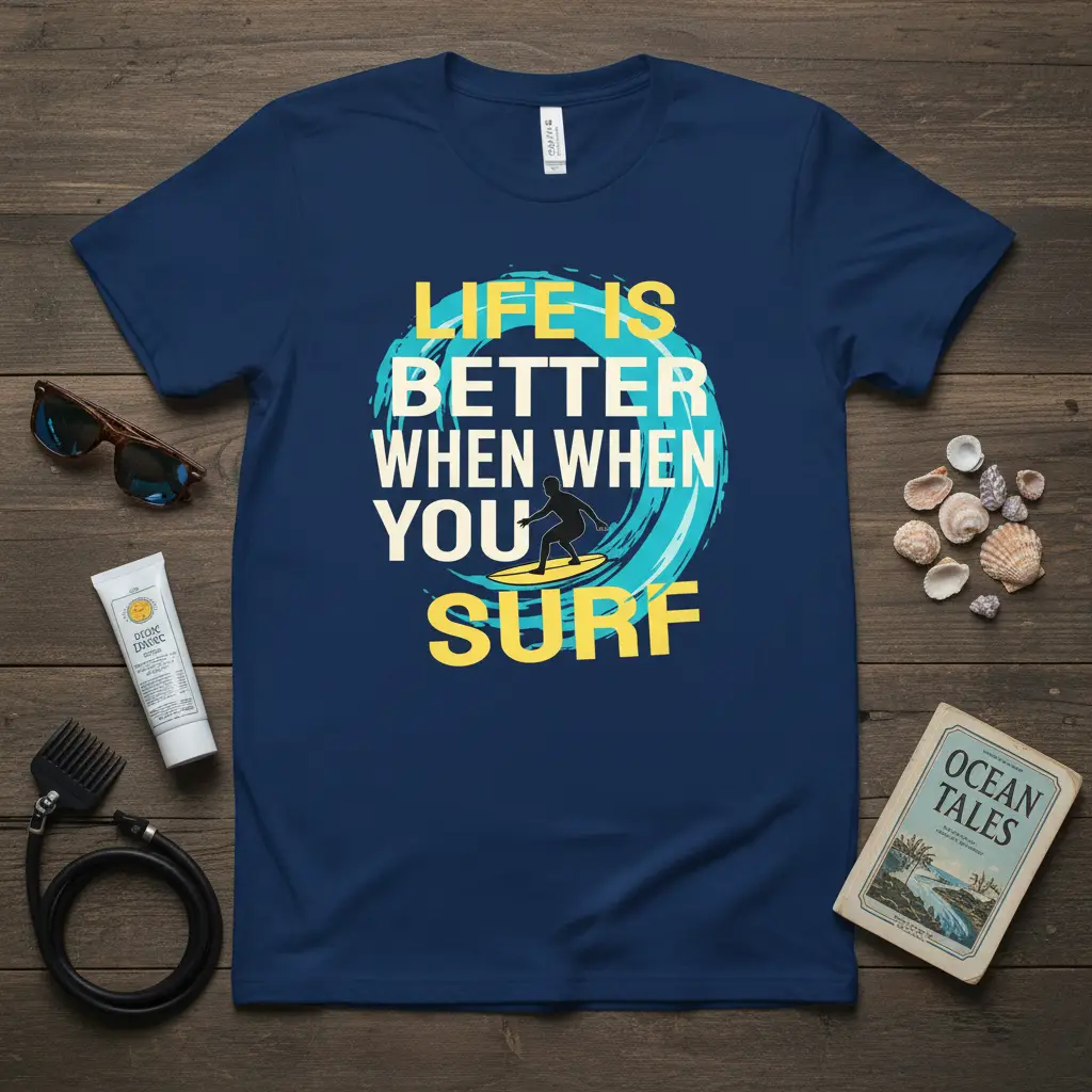 Life Is Better When When You Surf—this sentiment perfectly captures the exhilarating freedom and joy that comes with riding the waves. This t-shirt is designed for those who feel most alive with the ocean breeze on their face and the thrill of a perfect swell beneath their board. It’s more than just apparel; it’s a declaration of your passion for the surf lifestyle. The vibrant design evokes the spirit of adventure and the laid-back vibe of beach culture. Wear it proudly and let everyone know where your true happiness lies.