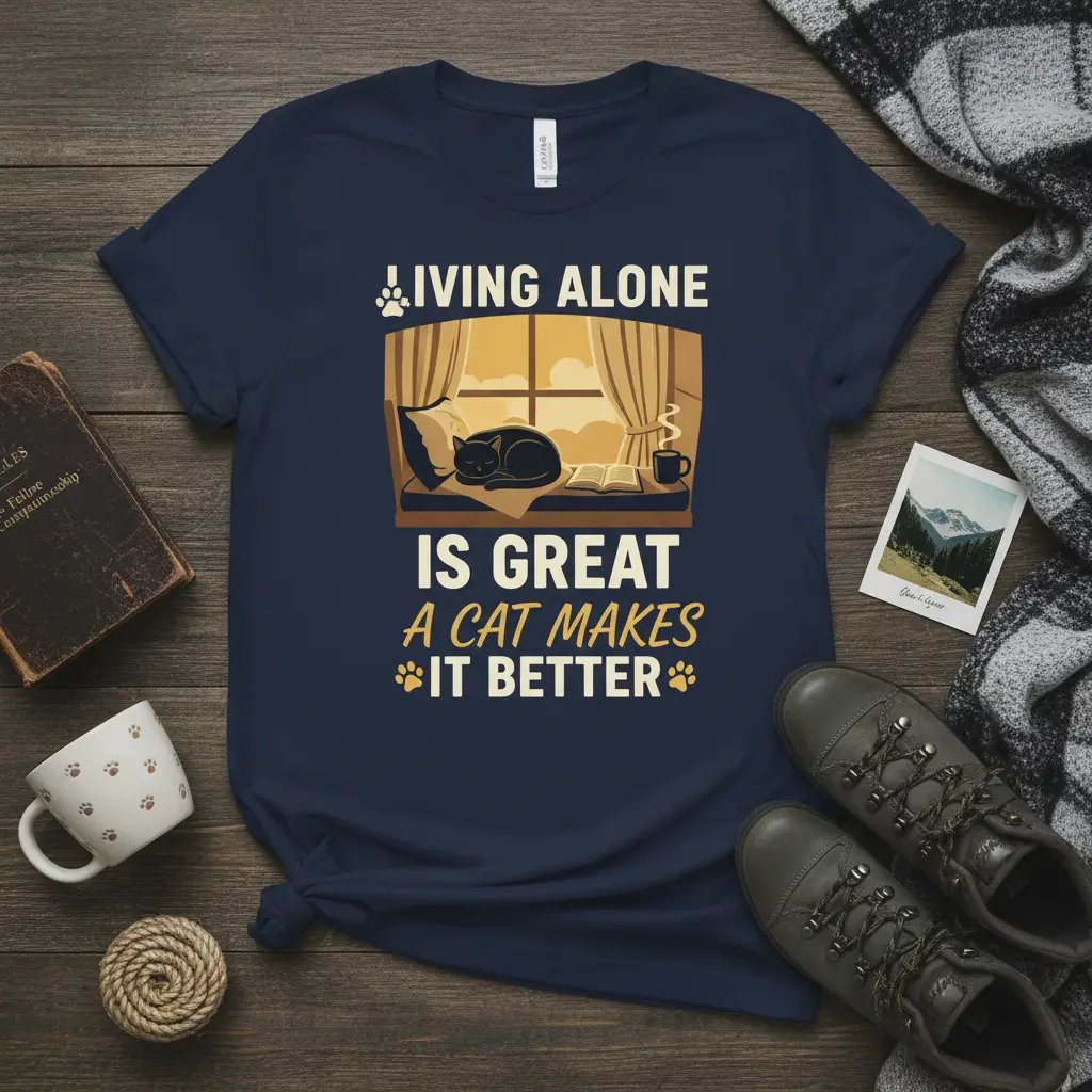 This t-shirt is a testament to the fact that while living alone can be wonderful, the presence of a cat transforms it into something truly special. It’s a humorous nod to the independent spirit of cat owners and the undeniable charm of their feline companions. This design is sure to bring a smile to your face and those around you.