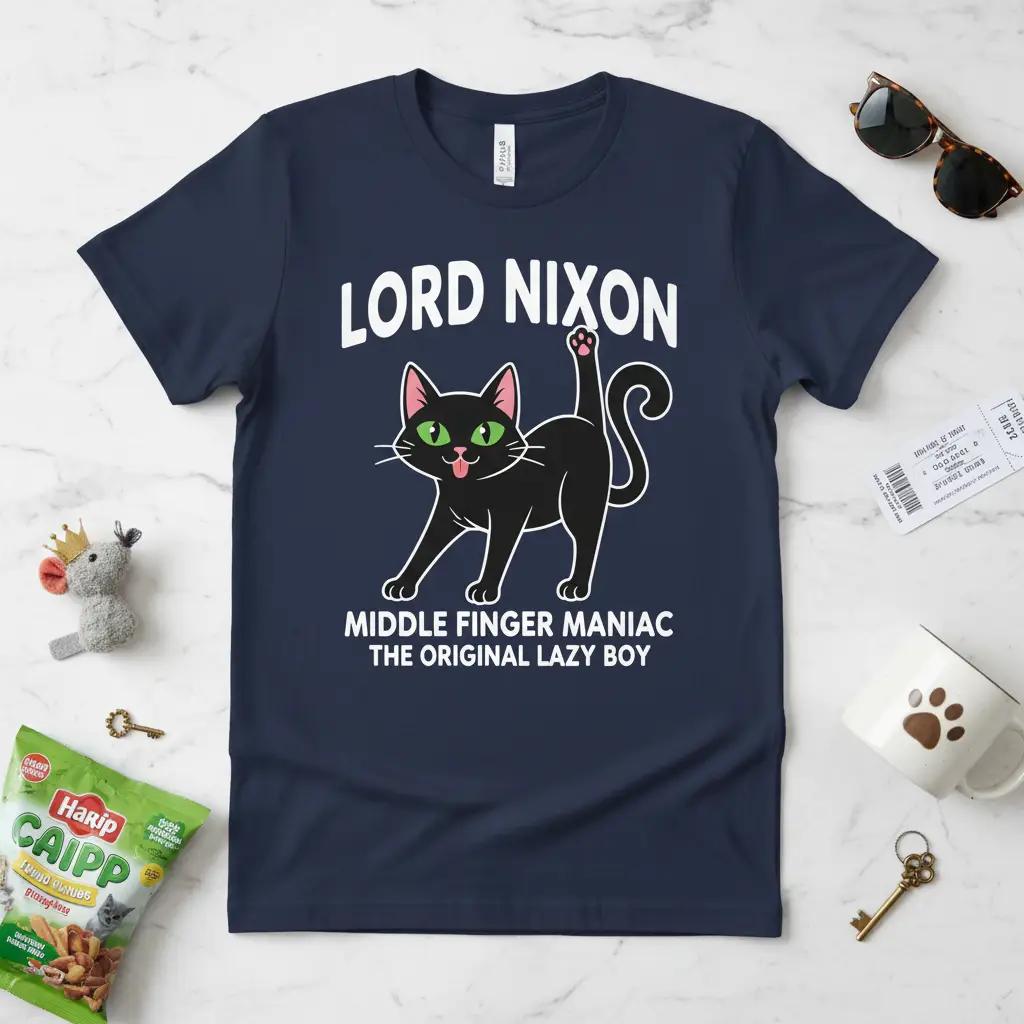 This iconic phrase, “Lord Nixon Middle Finger Maniac The Original Lazy Boy,” speaks volumes about the modern house cat. It’s a humorous nod to their regal demeanor, their occasional bouts of wild energy, and their ultimate dedication to napping. This t-shirt celebrates that complex personality, blending regal titles with playful rebellion. It’s for the cat parent who understands the subtle art of a demanding meow or a strategic paw placement.
