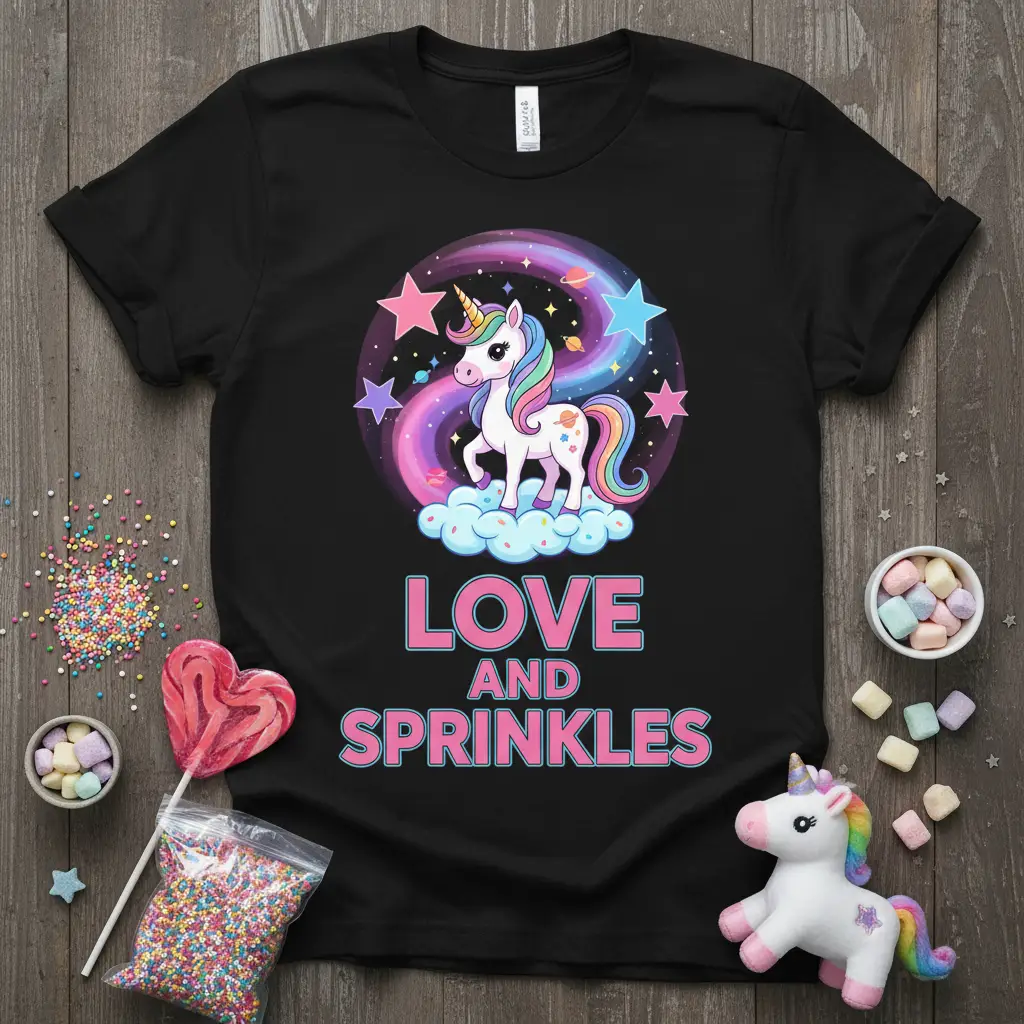 Don’t miss out on the chance to own this enchanting “Love and Sprinkles” t-shirt. It’s a perfect way to add a touch of whimsy and joy to your wardrobe or to surprise a loved one with a magical gift. This shirt is designed to inspire dreams and spread happiness, making it a delightful addition to any collection. Order yours today and let the magic begin!