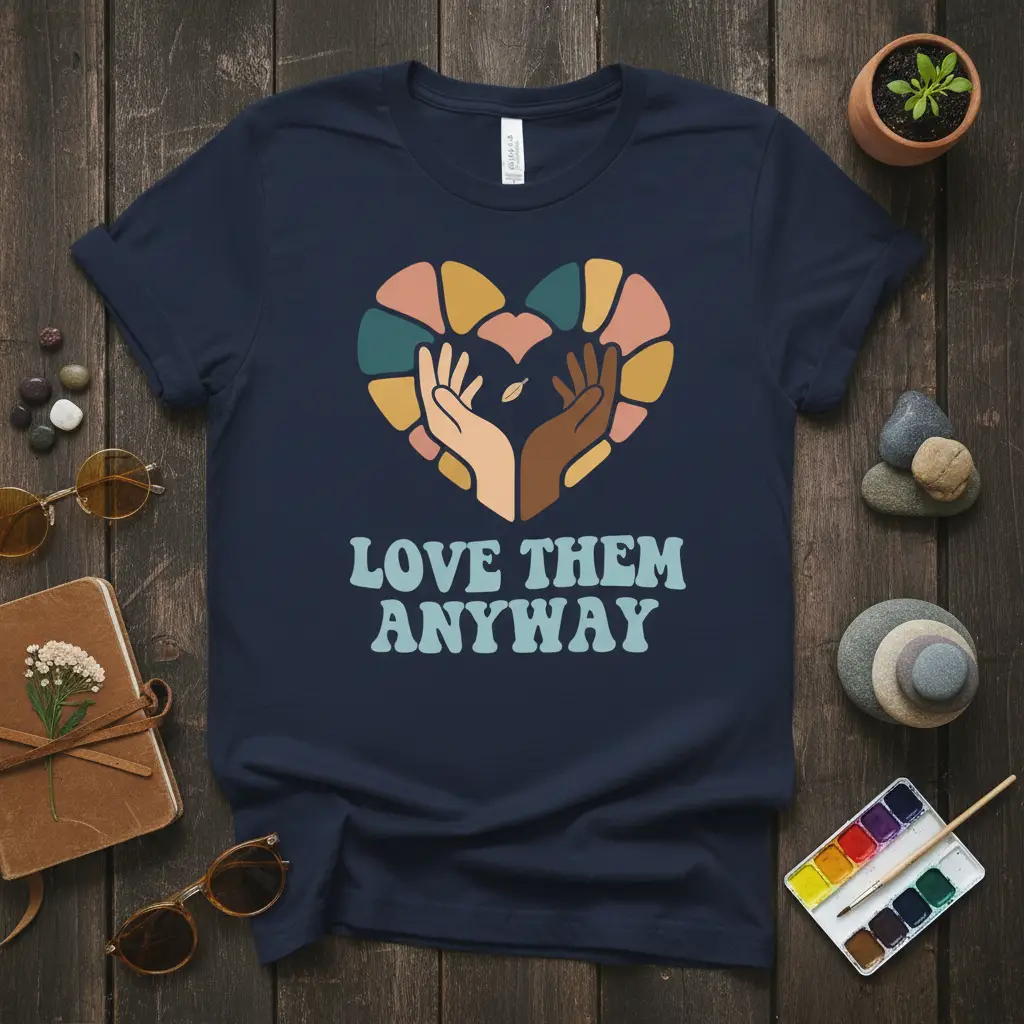 Make a statement about what matters most with this eye-catching graphic tee. The bold design is printed on a soft, durable fabric, ensuring both comfort and longevity. It’s designed to be a staple in your wardrobe, perfect for casual outings, community events, or simply as a daily reminder to live with an open heart. This LOVE THEM ANYWAY design is a wearable piece of art that carries significant meaning.