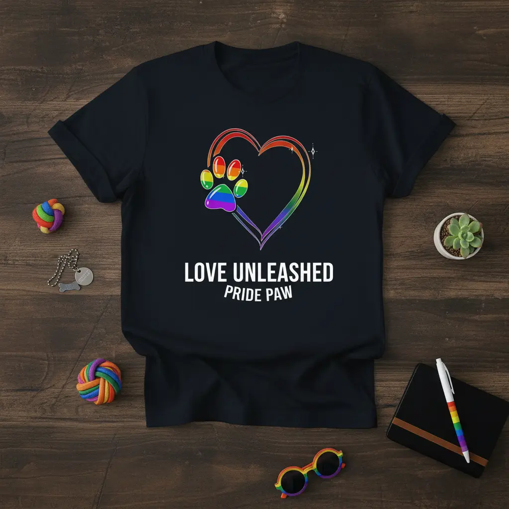 The “Love Unleashed Pride Paw” t-shirt is designed for comfort and durability, ensuring you can wear your message of love and pride all day long. Its unique graphic makes it a standout piece, perfect for sparking conversations and connecting with like-minded individuals. Whether you’re attending a pride parade, walking your dog in the park, or simply enjoying a casual day out, this tee is sure to make a statement.