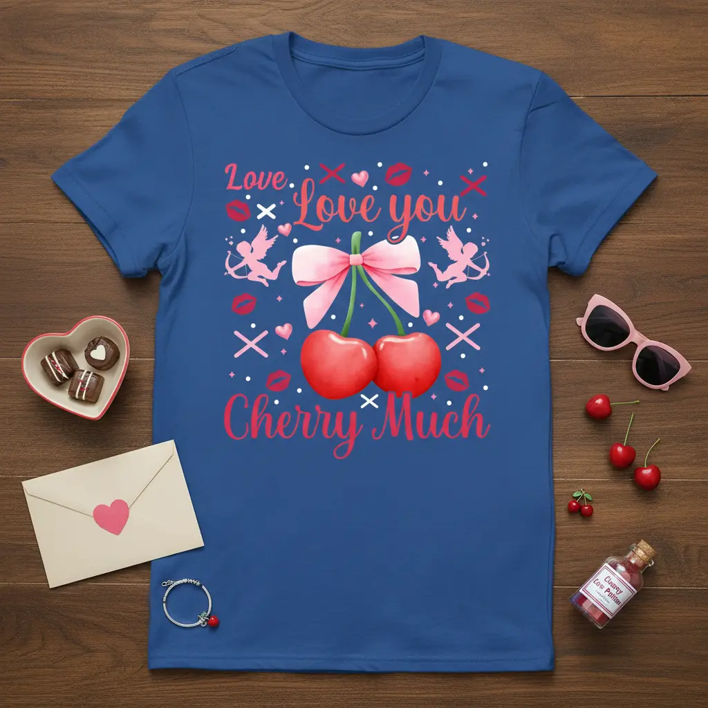 Love you Cherry Much, this adorable phrase captures the essence of sweet affection and playful romance, making it the perfect sentiment for Valentine’s Day or any occasion where you want to express your deep feelings. This charming design is more than just a t-shirt; it’s a wearable declaration of love, featuring vibrant cherries, a cute pink bow, and delightful cupid accents. It’s designed to bring a smile to your face and warmth to your heart, embodying the joy of a loving connection. This piece is ideal for anyone looking to share a little extra sweetness with their significant other or a cherished friend.