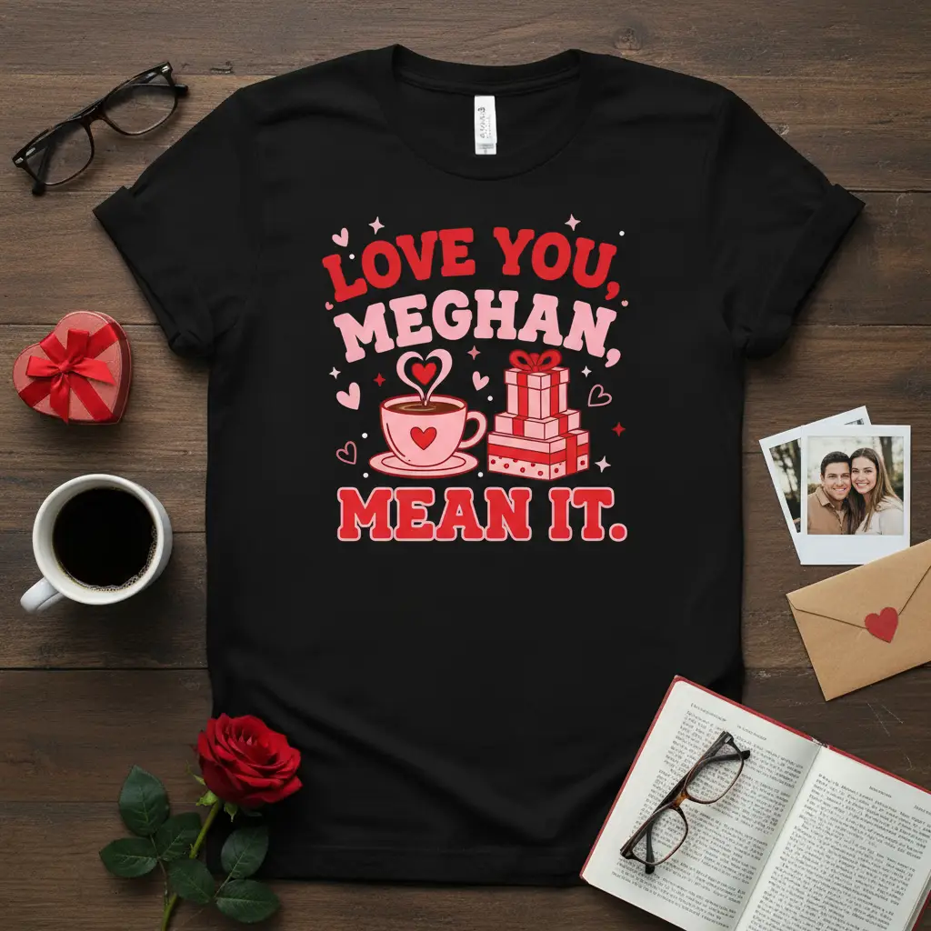 Love You, Meghan, Mean It. T-Shirt for Valentine’s Day