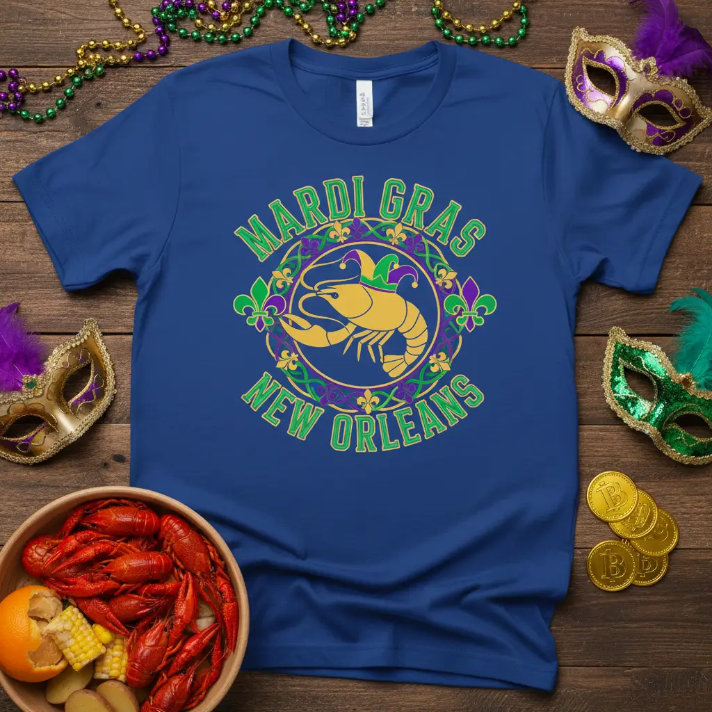 This striking t-shirt proudly displays “MARDI GRAS NEW ORLEANS” in bold, festive lettering, encircling a brilliant gold crawfish. The design is further enhanced with traditional Mardi Gras colors of purple and green, featuring elegant fleur-de-lis accents that symbolize the rich heritage of Louisiana. It’s an ideal way to showcase your enthusiasm for the Fat Tuesday festivities and the unique cultural tapestry of New Orleans. Wearing this shirt is like carrying a piece of the celebration with you, igniting conversations and spreading cheer wherever you go.