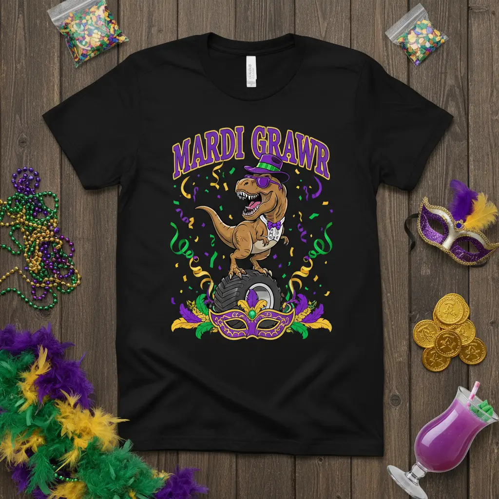 Mardi Grawr: Your Ultimate Mardi Gras Dinosaur Tee