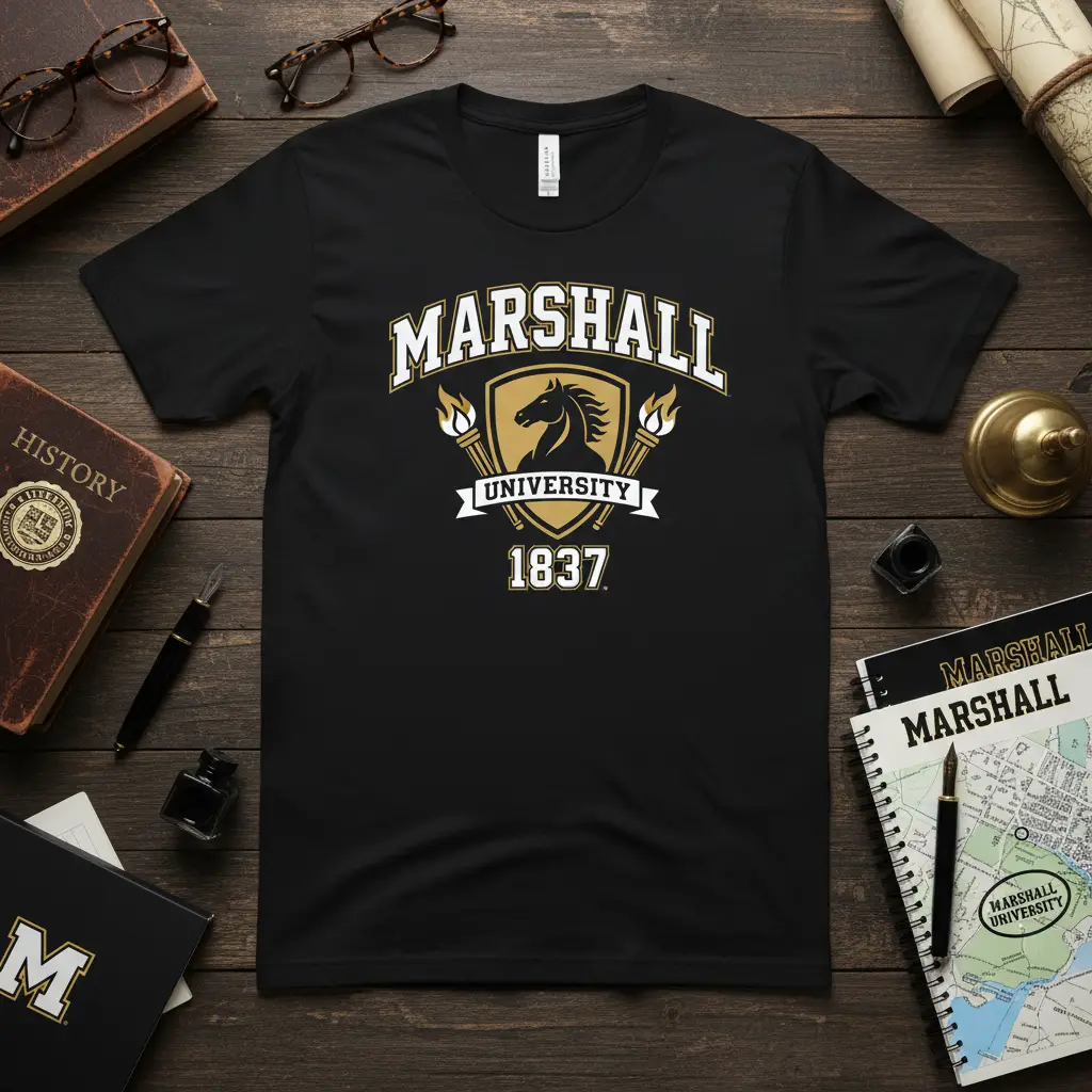 Pick from Black, Navy, Royal, Dark Heather, Red, and White to match your mood and wardrobe staples. Each colorway keeps the Marshall University 1837 design clear and photo-ready for everyday wear.