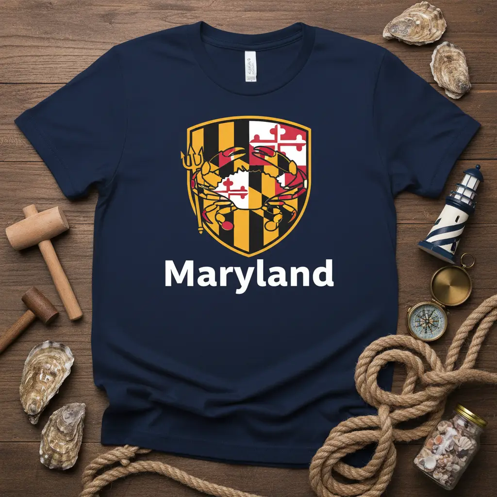 Celebrate your love for Maryland with this eye-catching Maryland Crab Shield T-Shirt. Featuring iconic state symbols, this comfortable tee is perfect for showing off your local pride or as a unique souvenir. It’s a fantastic gift for anyone who cherishes the Old Line State.