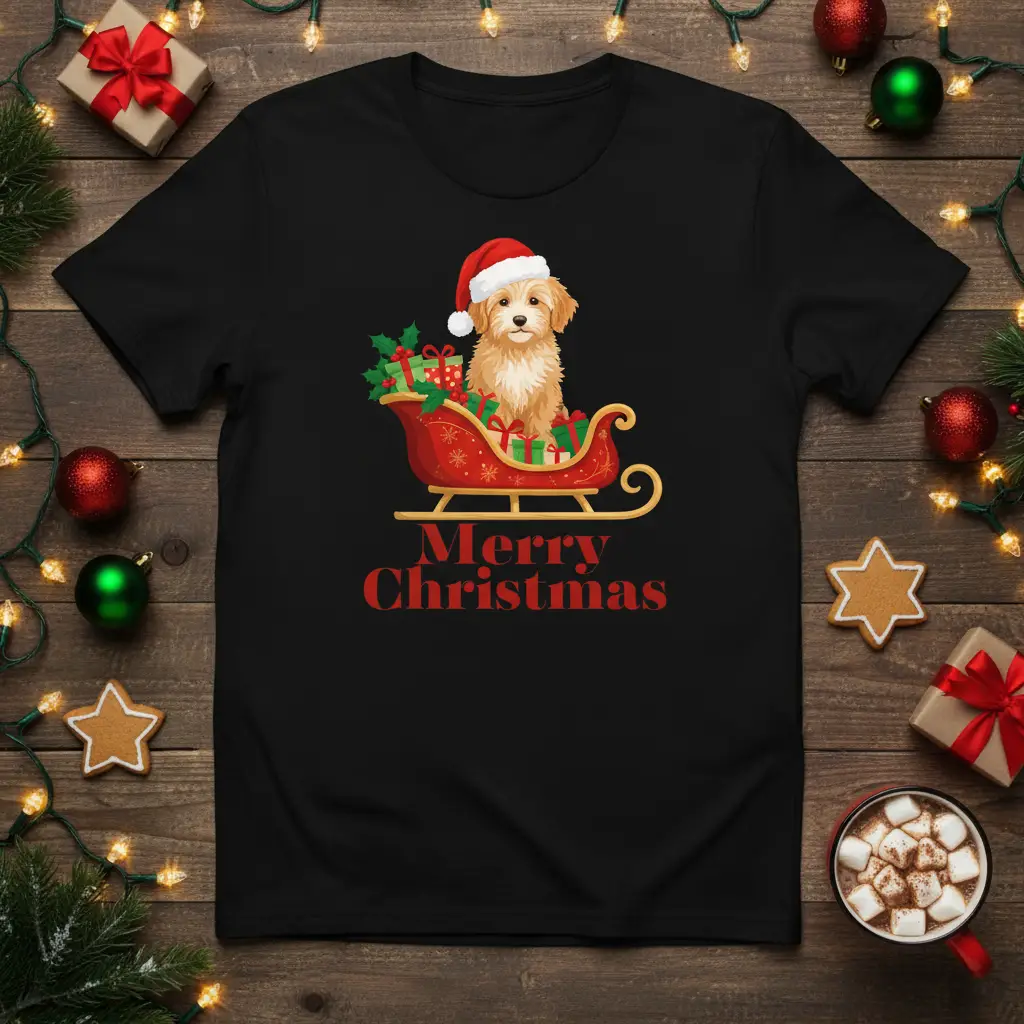 Merry Christmas Dog Sleigh T-Shirt: Your Festive Companion