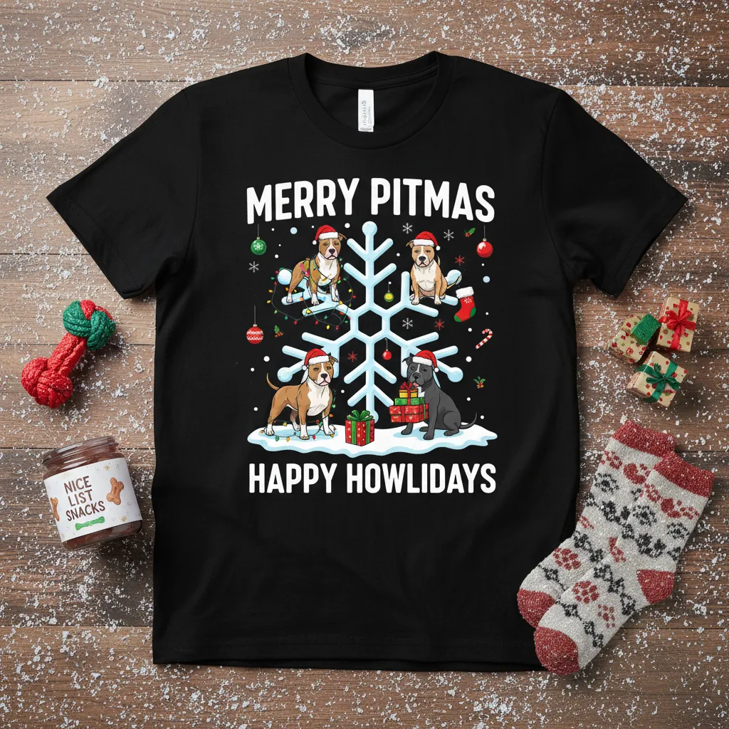 Merry Pitmas Happy Howlidays T-Shirt: A Festive Delight for Pitbull Lovers