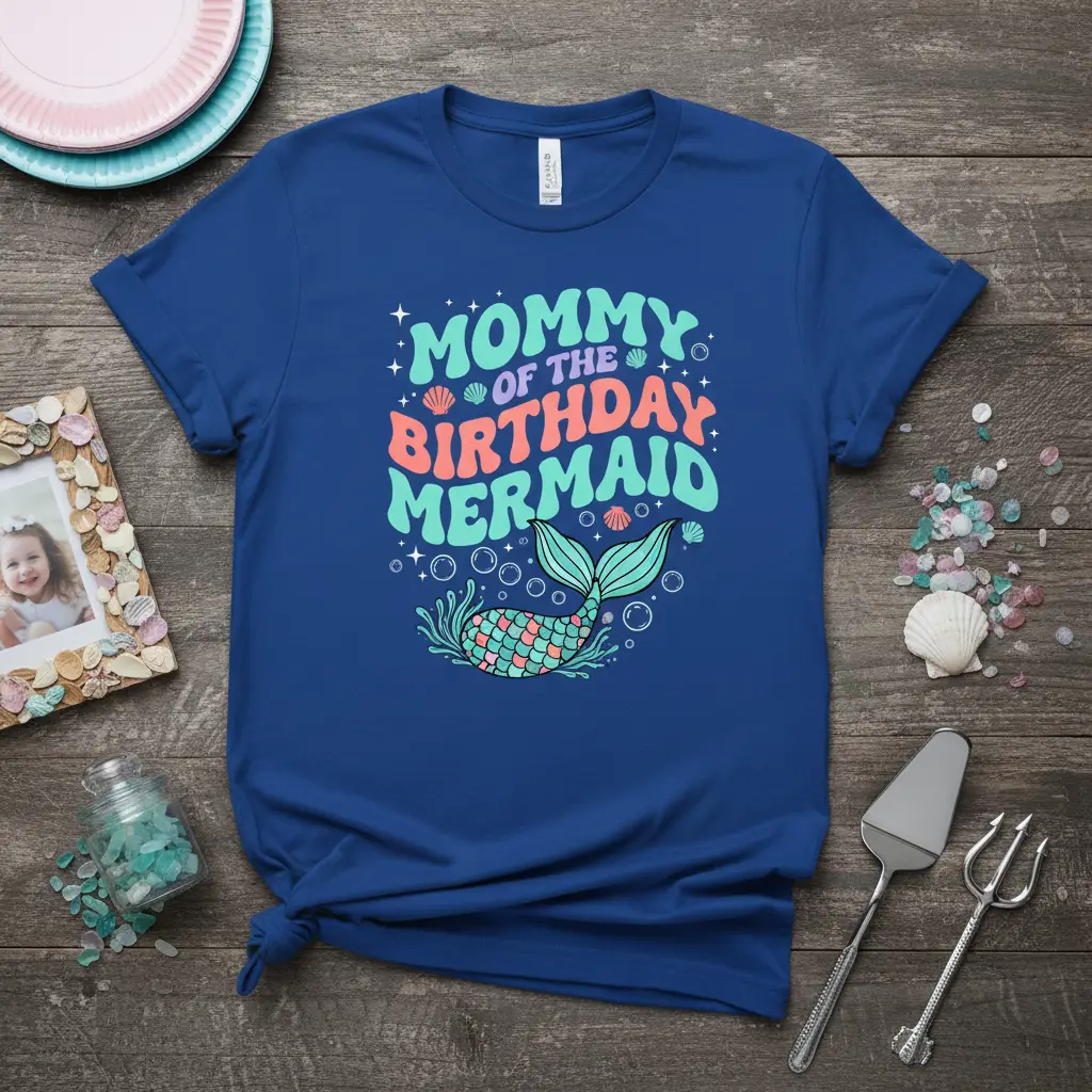 Looking for the perfect birthday girl gift? While this shirt is for the mom, it perfectly complements any mermaid-themed party, making it a fantastic addition to your celebration planning. Imagine your little birthday mermaid surrounded by family wearing this special shirt – it creates a cohesive and joyous atmosphere. This tee is a subtle nod to your crucial role in bringing their dreams to life.