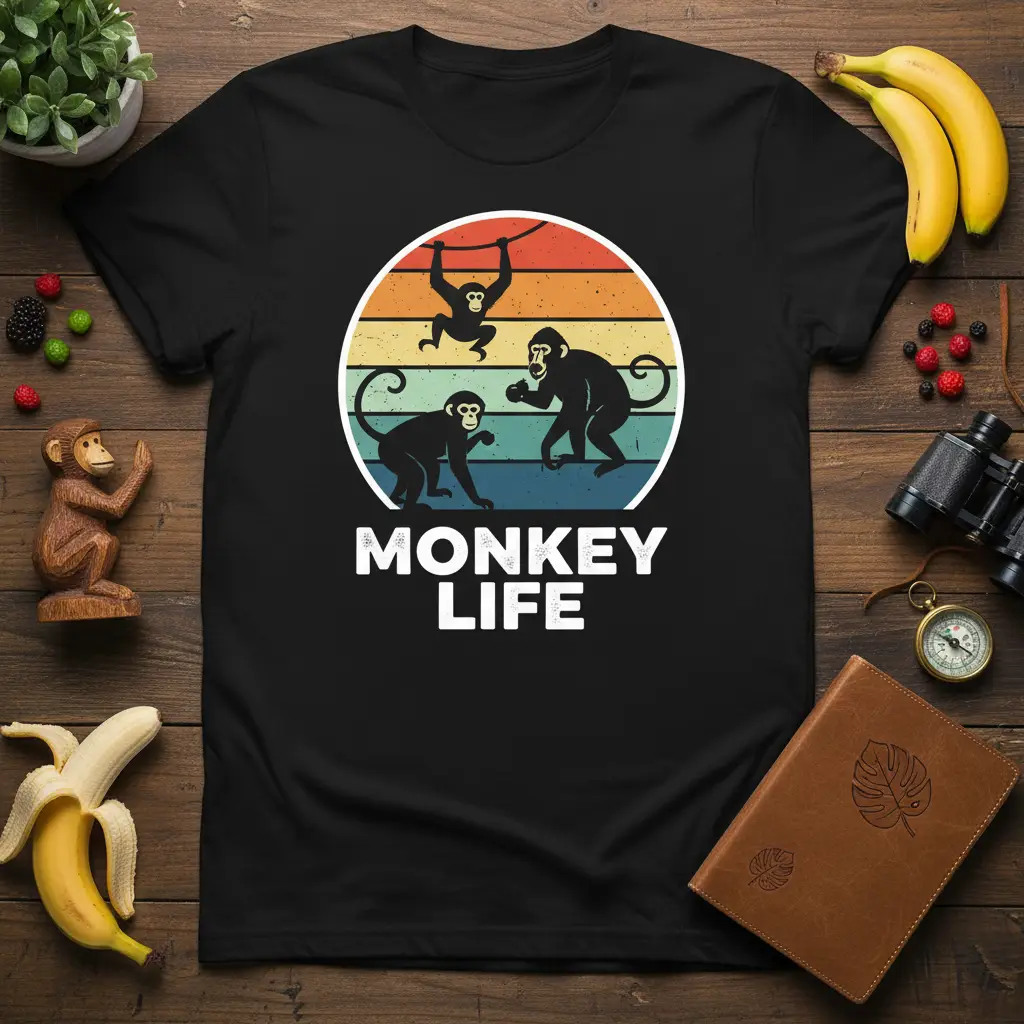 Celebrate the joy of the jungle with this “Monkey Life” t-shirt, designed for true animal enthusiasts. Featuring a playful retro sunset scene with mischievous monkeys, this comfortable tee is a fantastic gift for anyone who adores primates and the wild. It’s a unique way to express your love for the animal kingdom.