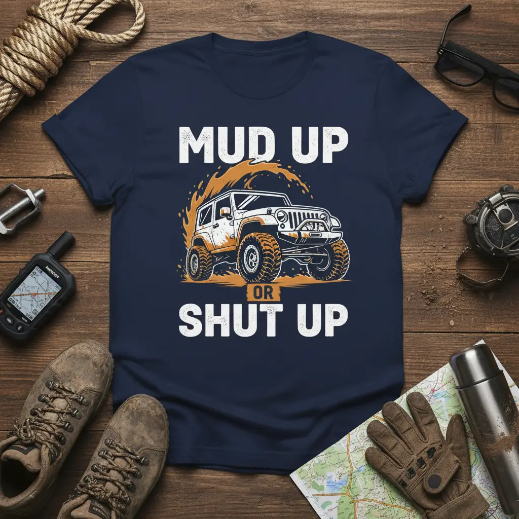 Don’t just drive off-road, live it! This “Mud Up Or Shut Up” tee is designed for those who live and breathe the off-road lifestyle. It’s a bold, unapologetic statement that showcases your commitment to adventure and exploration. Pair it with your favorite jeans or outdoor gear for a look that’s as rugged and adventurous as you are. Ready to hit the trails? Grab this essential piece of off-roading apparel and let everyone know you’re here for the mud!