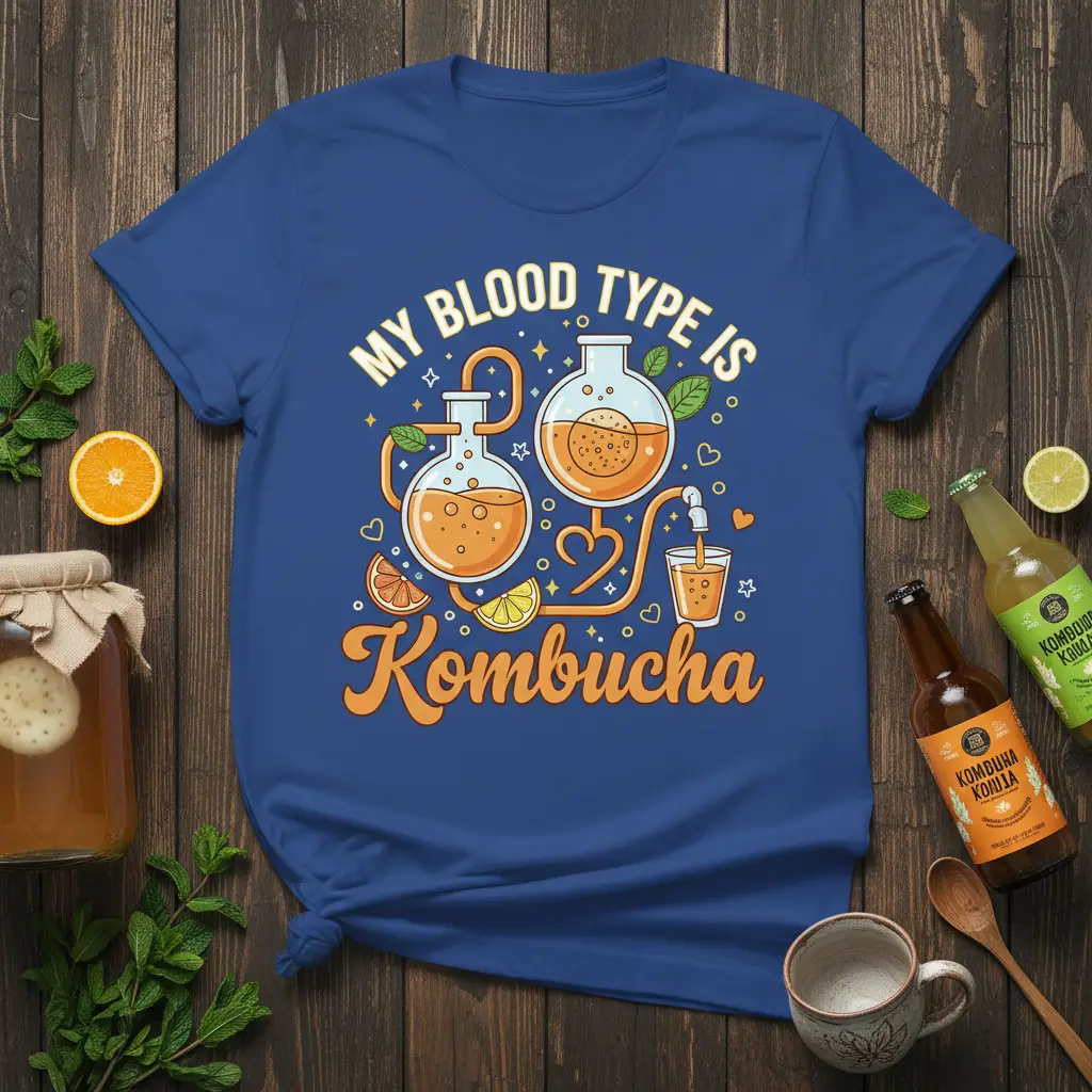 My Blood Type Is Kombucha, and this t-shirt is the perfect way to show it off! Designed for the dedicated brewer and the enthusiastic drinker alike, this tee captures the essence of what makes kombucha so special. It’s more than just a beverage; it’s a lifestyle, a passion, and for many, a daily ritual. The vibrant design featuring bubbling beakers and fresh citrus elements is sure to spark conversations and connect you with fellow kombucha aficionados.