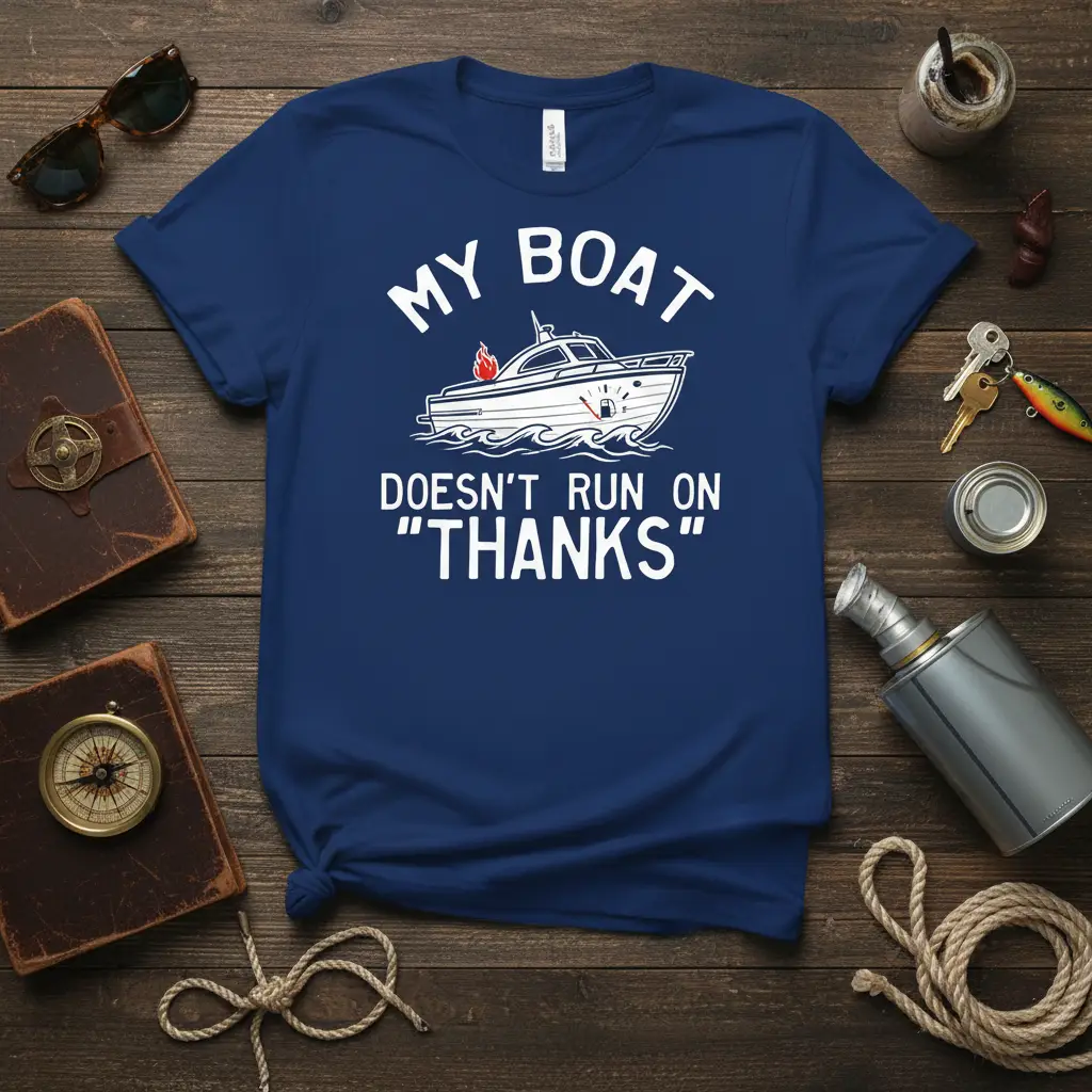 Celebrate your love for the water with the “My Boat Doesn’t Run On ‘Thanks'” T-Shirt. This humorous tee is perfect for any boat owner or sailing enthusiast who understands the realities of marine life. Crafted for comfort and designed to make a statement, it’s an ideal gift that will surely bring a smile.