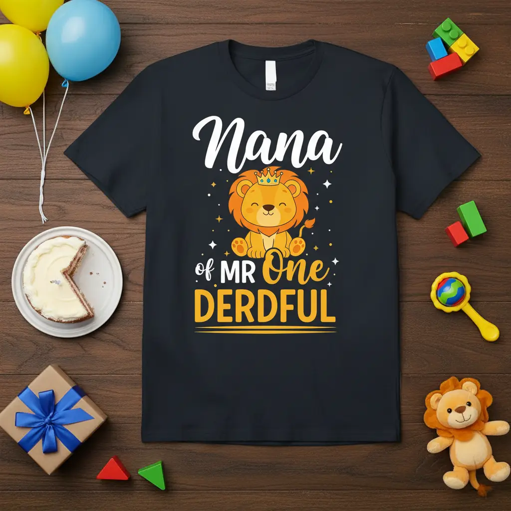 Looking for the ideal gift for a proud Nana? This “Nana of MR ONE DERDFUL” t-shirt is an excellent choice. It’s a unique and personal present that she can wear on the big day or keep as a treasured memento of her grandchild’s first birthday. The adorable lion graphic adds a touch of fun and festivity.