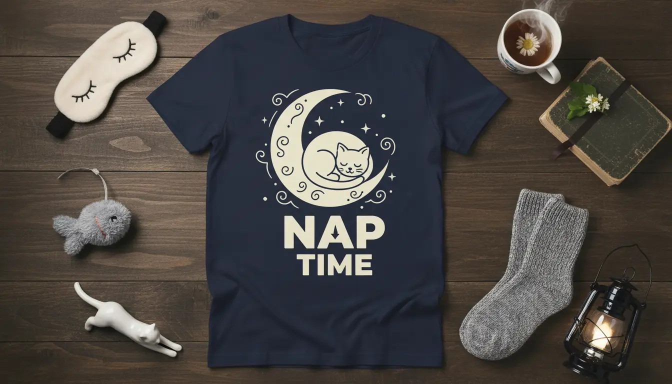 Nap Time Cat Sleeping Moon T-Shirt Cozy Gift for Cat Lovers