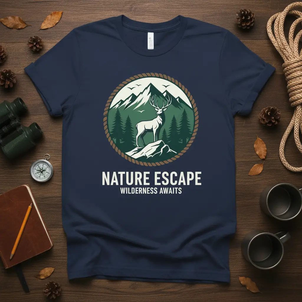 NATURE ESCAPE WILDERNESS AWAITS. This design is crafted for the true adventurer, the soul who finds solace and exhilaration in the vastness of the natural world. It speaks to the quiet thrill of a mountain sunrise, the majestic presence of wildlife, and the deep connection we feel when surrounded by the untamed beauty of the wilderness. Wear it on your next expedition or as a daily reminder of your passion for exploration and the great outdoors. This tee is more than just apparel; it’s a statement of your adventurous spirit and your love for the wild places that call to you.