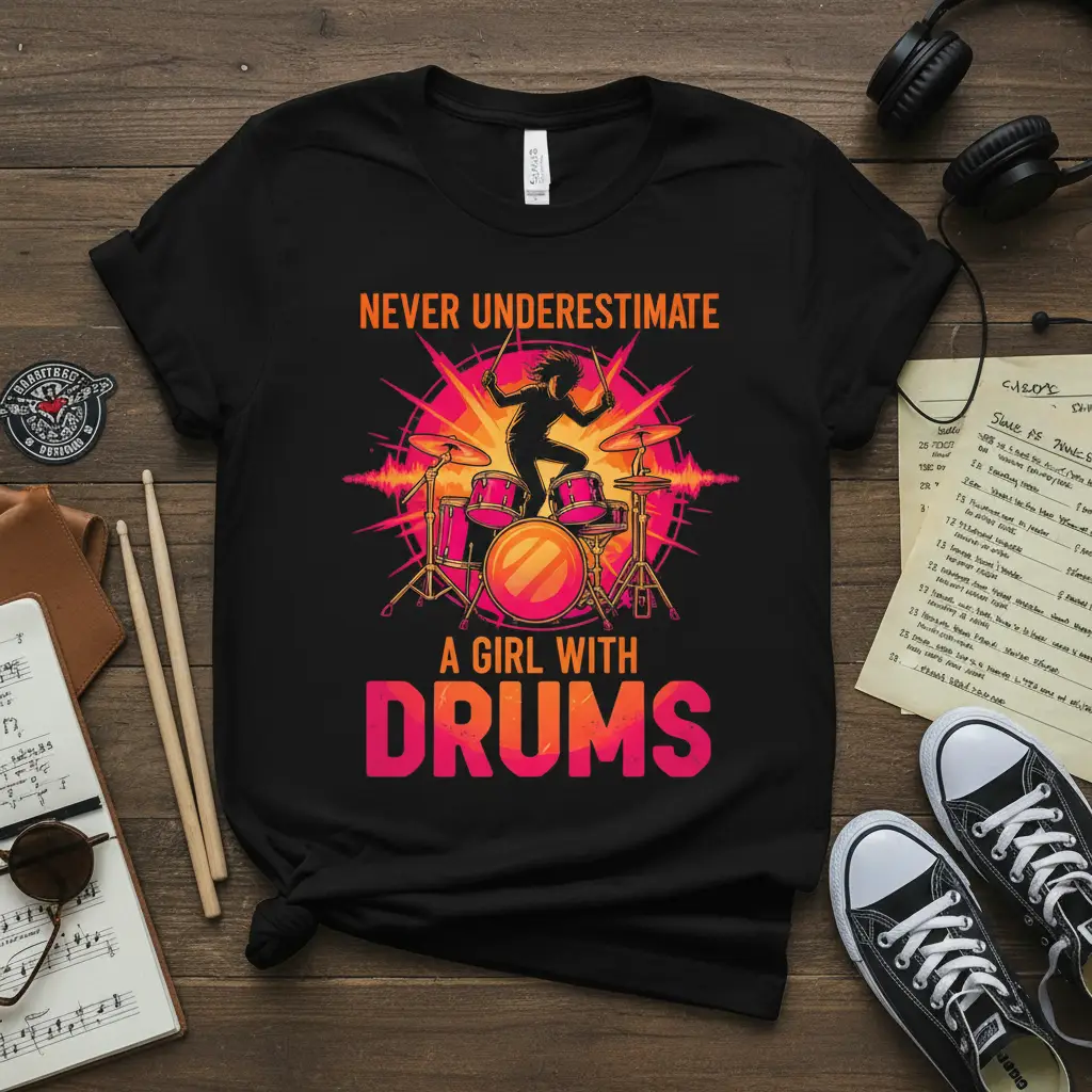 The bold typography and striking graphics make this design a standout piece for any music lover. It’s a fantastic way to express individuality and celebrate the unique role of women in the music industry. Whether you’re a beginner or a seasoned pro, this tee is sure to resonate with your love for drumming and your fierce spirit.