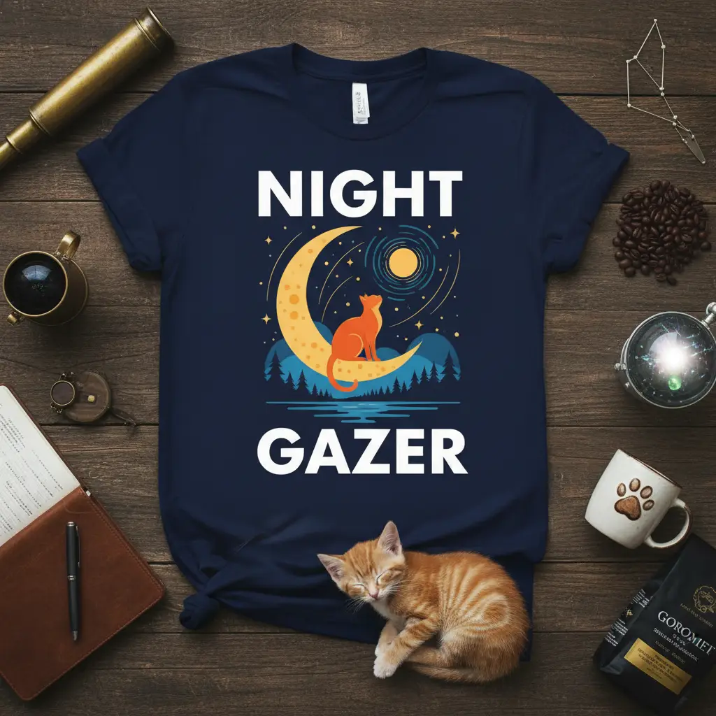 Pick from Black, Navy, Royal, Dark Heather, Red, and White to match your mood and wardrobe staples. Each colorway keeps the NIGHT GAZER design clear and photo-ready for everyday wear.