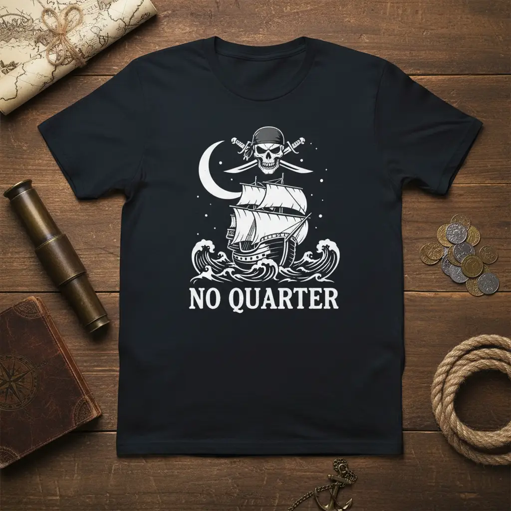 Don’t miss the chance to own this exceptional “No Quarter” t-shirt. It’s more than just a piece of clothing; it’s a symbol of courage, adventure, and a life lived without compromise. Add this distinctive design to your collection and let your adventurous spirit shine. Order yours today and chart your own course!